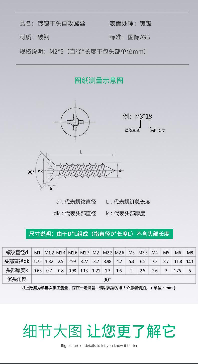 Tornillo autorroscante de cabeza avellanada cruzada niquelada M1/M1.7/KA, tornillo pequeño para computadora, tornillo miniatura de cabeza plana