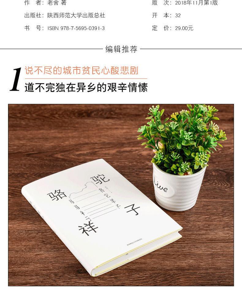 """Camel Xiangzi" es una de las obras representativas de Lao She. Toda la novela muestra vívidamente la miserable vida de los conductores de rickshaw en la vieja sociedad, con los tres altibajos de Xiangzi en la compra de un rickshaw como la pista central del desarrollo de la trama. Resume artísticamente la trágica vida de Xiangzi, desde lleno de esperanza hasta luchando y esforzándose, hasta el colapso mental y la degeneración. El autor selecciona apasionadamente las buenas cualidades originales de Xiangzi de bondad y sencillez, y ama el trabajo, y expone y denuncia con ira la sociedad oscura que obligó a Xiangzi al abismo de la degeneración. La novela también muestra poderosamente que en la vieja sociedad, es solo una fantasía hacerse rico únicamente con el esfuerzo personal. "Camel Xiangzi" fue publicado y traducido a más de una docena de idiomas, lo que tiene una gran influencia."