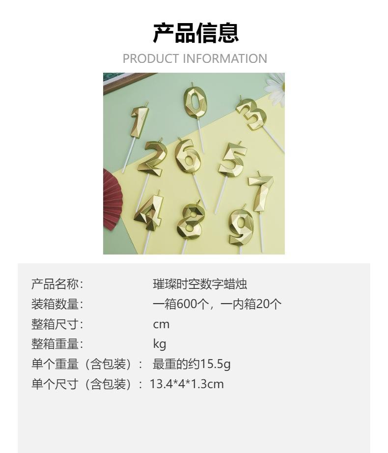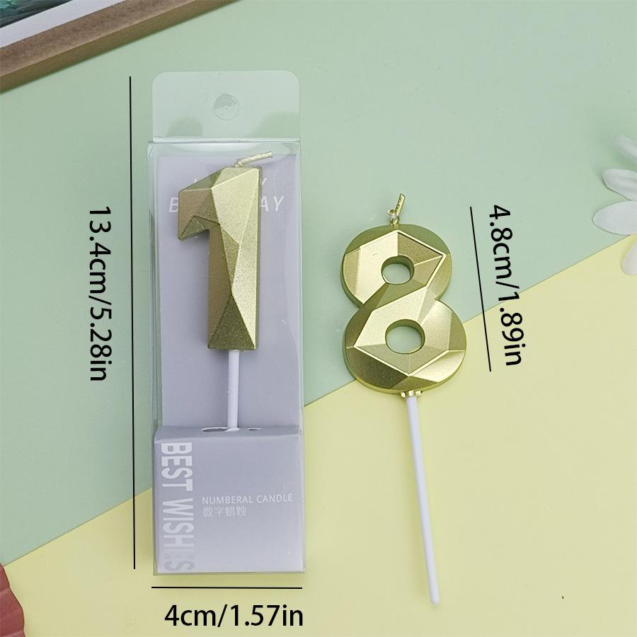 La longitud total de la vela es de aproximadamente 10.5 cm, el ancho del número 1 es de aproximadamente 2.2 cm. El ancho de los demás números es de aproximadamente 3.5 cm.