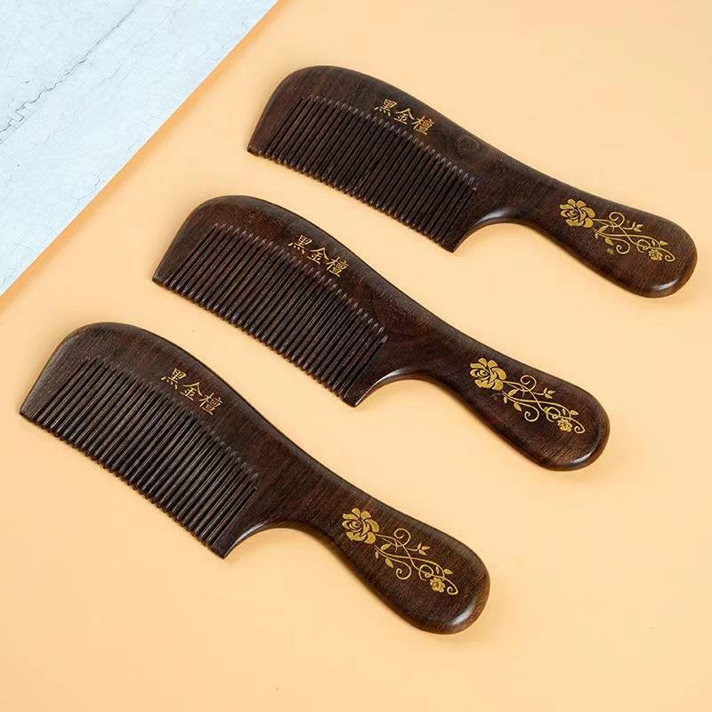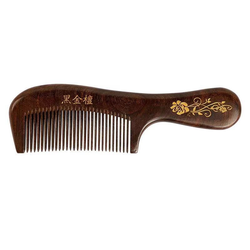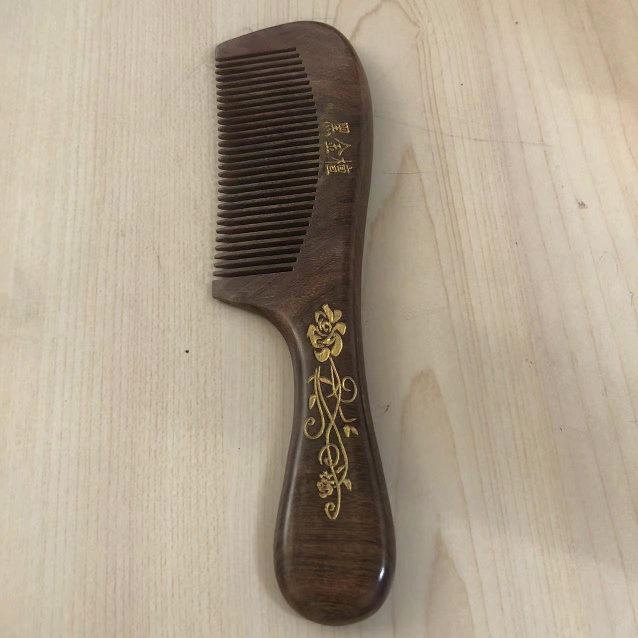 Black gold sandalwood double-sided engraving fuzi half-moon comb