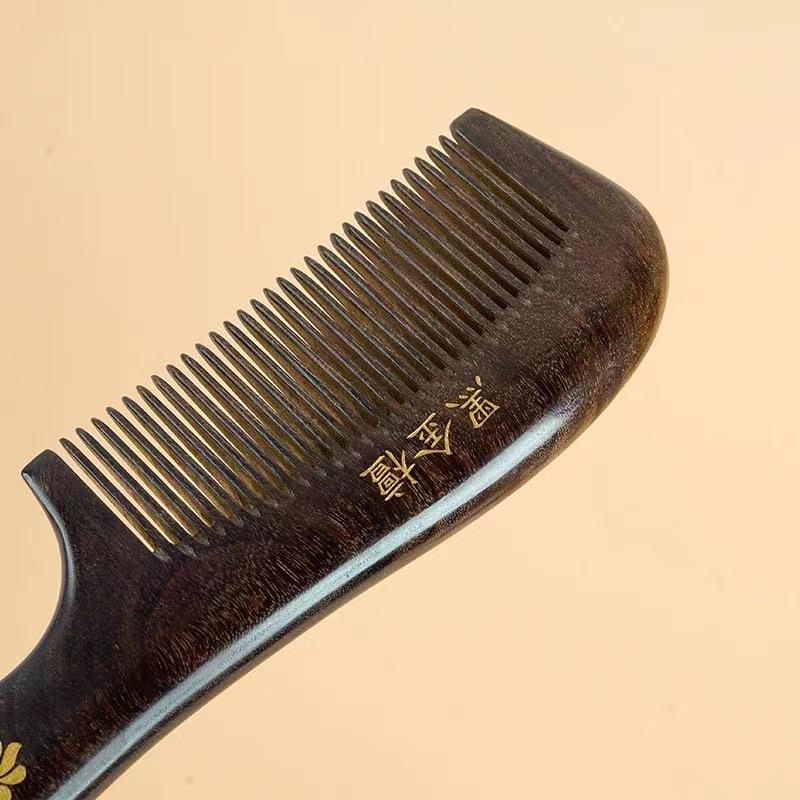 Black gold sandalwood with a sandalwood comb, Black gold sandalwood double-sided engraving fuzi half-moon comb