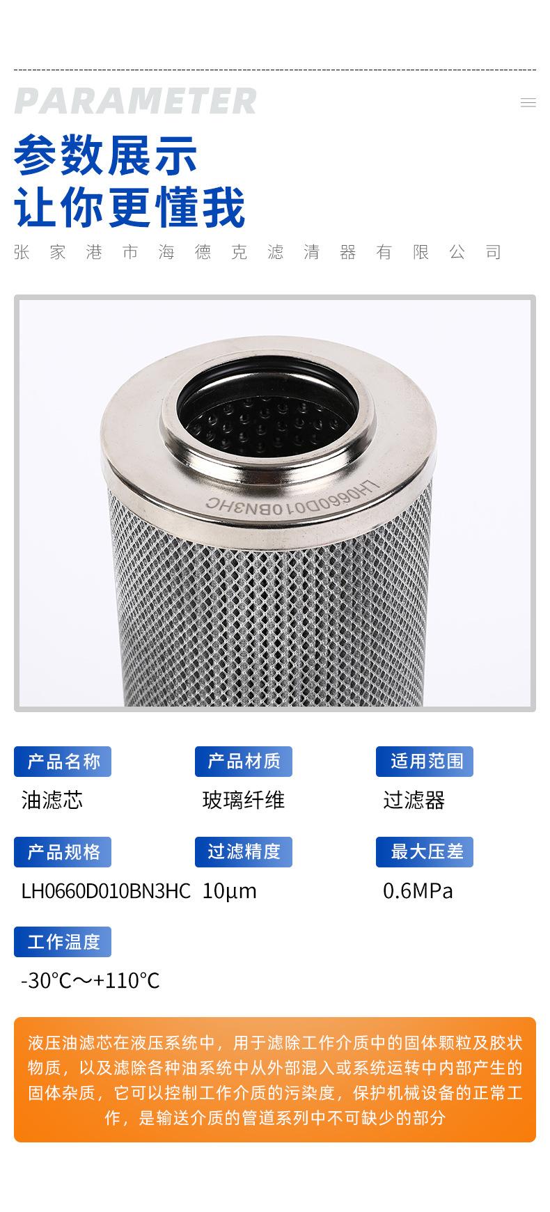 Los fabricantes suministran el elemento de filtro de aceite LH0660D010BN3HC, el elemento de filtro de aceite hidráulico químico.