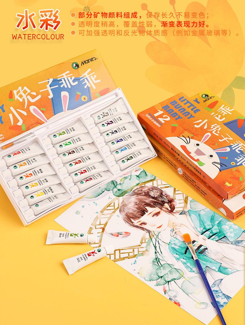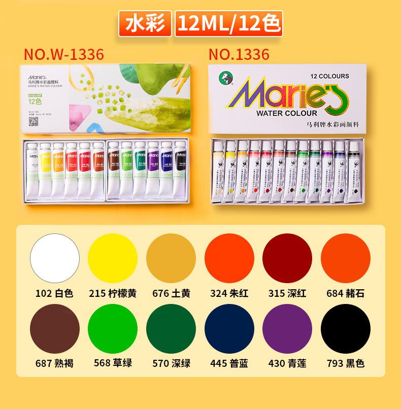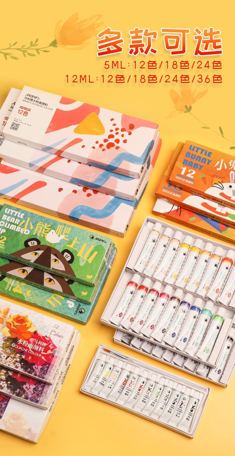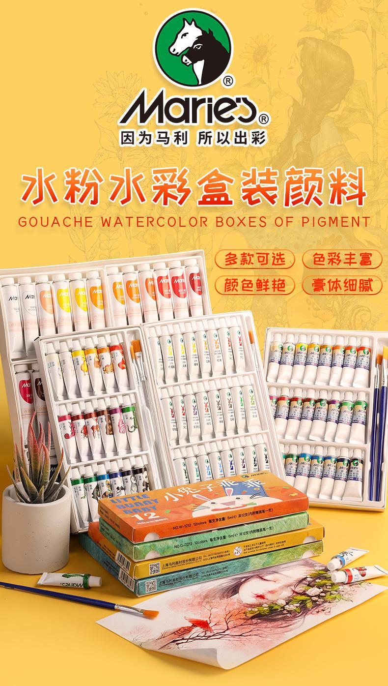 Set de pigmentos de acuarela gouache de 12 colores de la marca Marley, caja única, portátil, para niños, 5 ml, para principiantes
