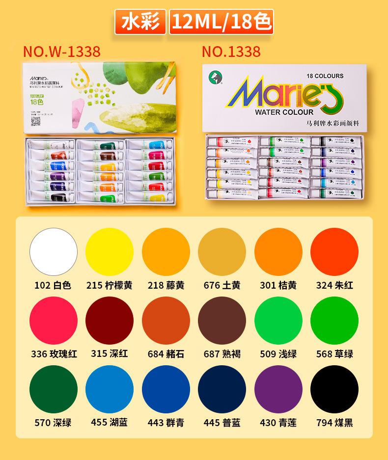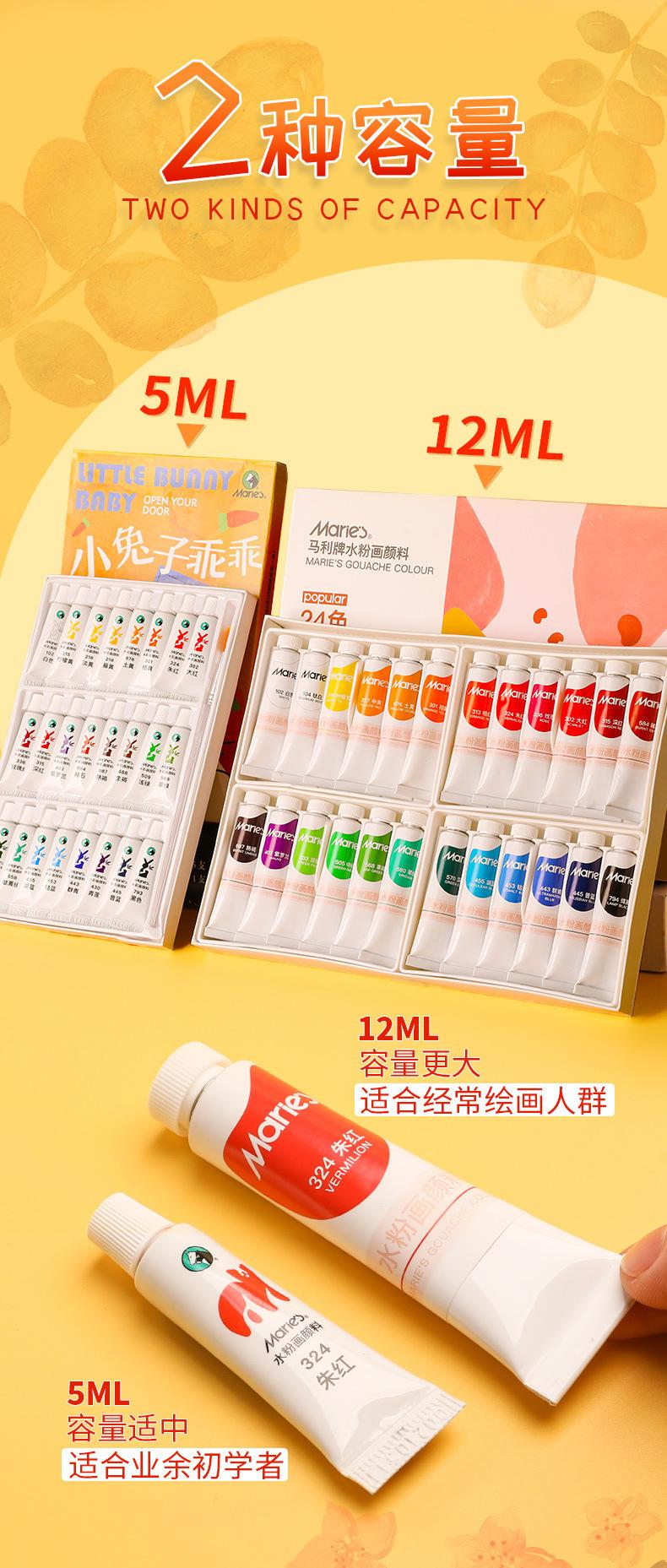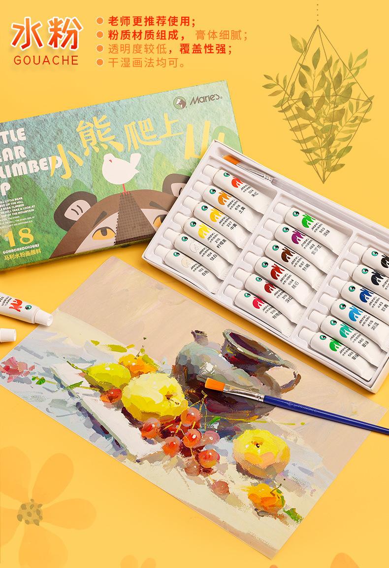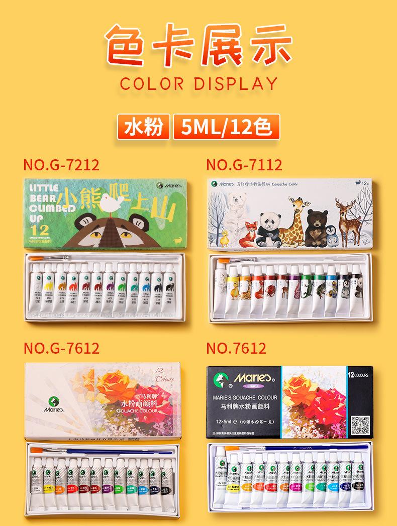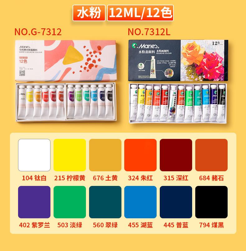 Set de pigmentos de acuarela gouache de 12 colores de la marca Marley, caja única, portátil, para niños, 5 ml, para principiantes