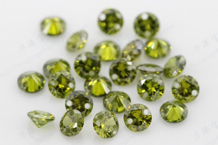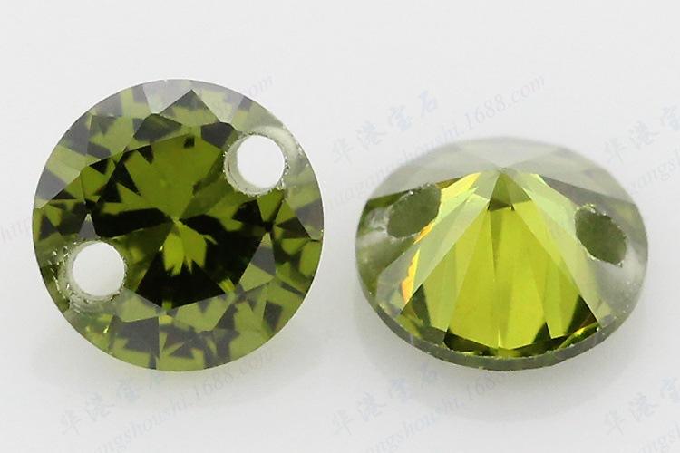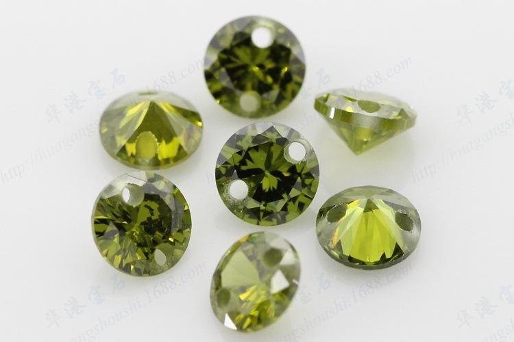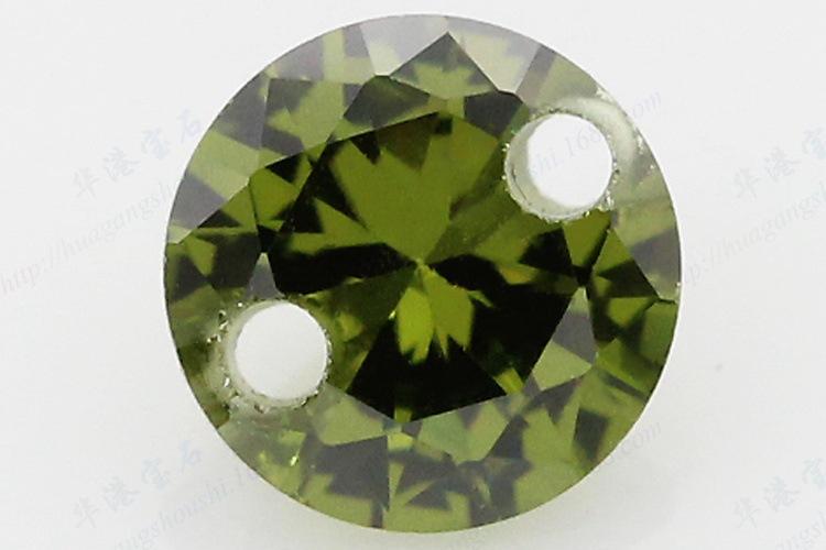 Anillo de circonita de doble agujero verde oliva redondo con gema Huagang, superficie de piedra desnuda, agujero con incrustaciones de esmeralda sintética, joyería