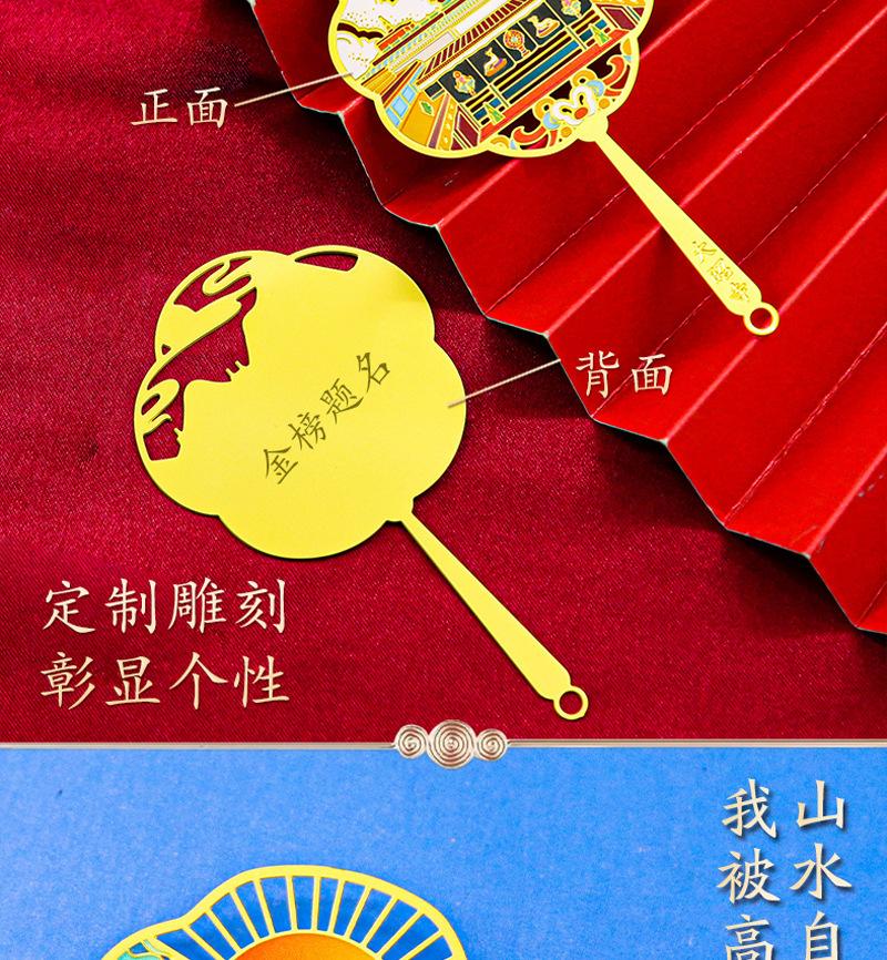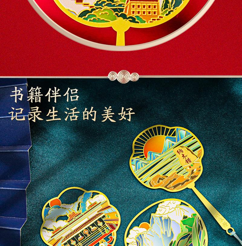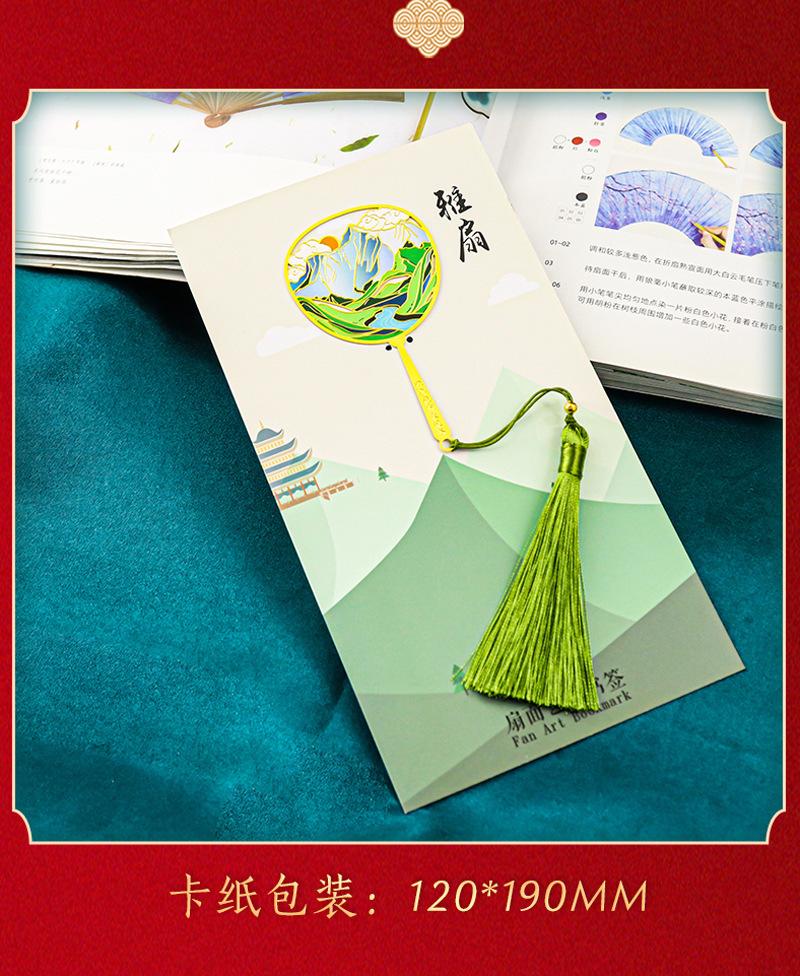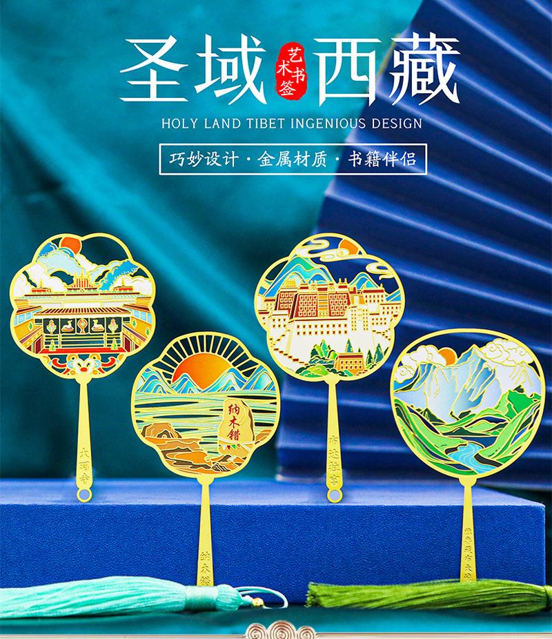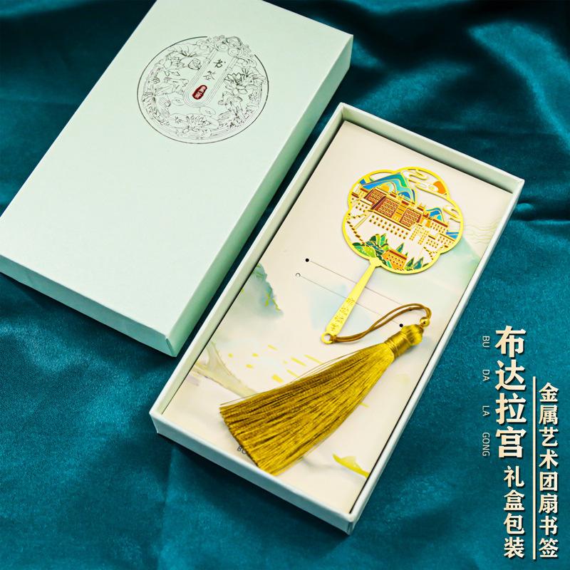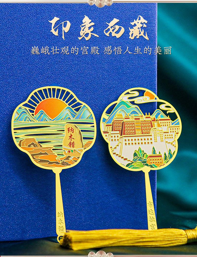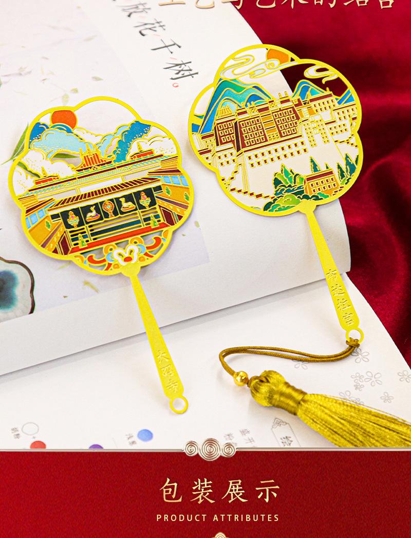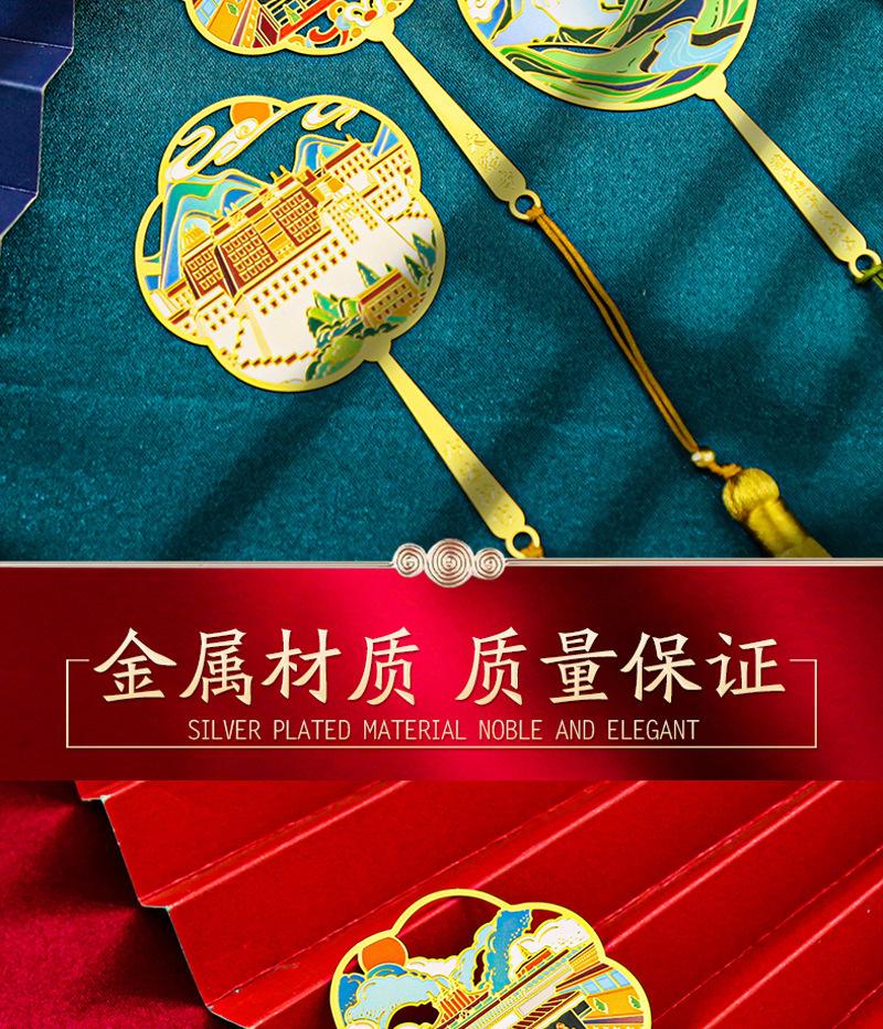 Shengyu Xizang estilo chino metal hueco abanico arte marcapáginas fresco simple Día del Maestro cultural y creativo estilo antiguo regalo
