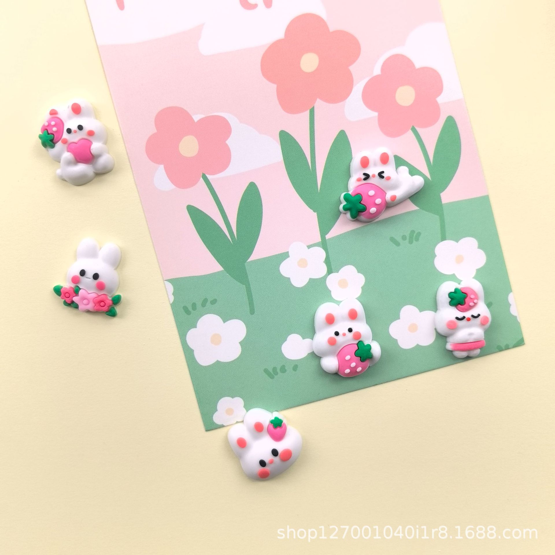 Serie Conejo Fresa, pegamento suave, parche de bricolaje, accesorios de resina, carcasa de teléfono móvil, agujero para zapatos, hebilla, taza de agua, pegatinas tridimensionales, conejito 3D