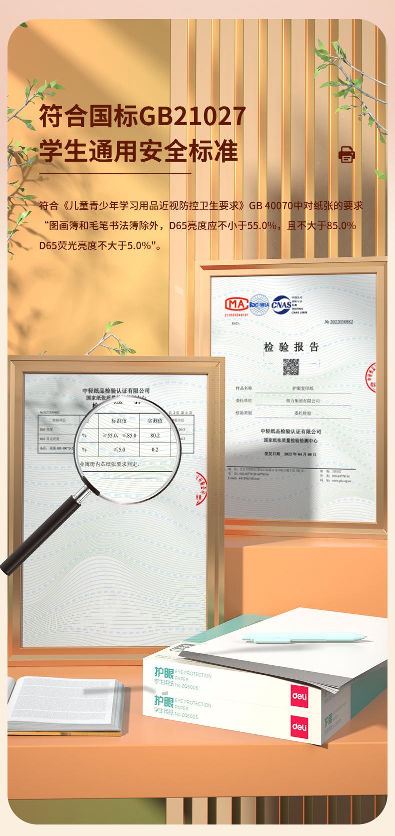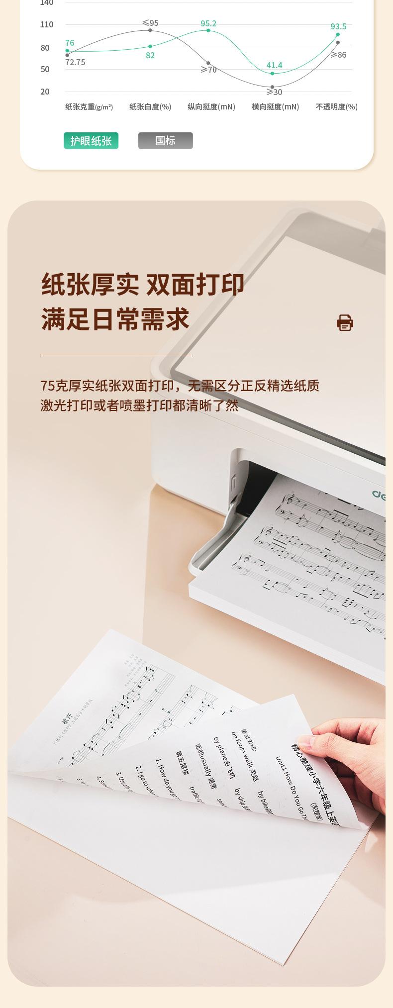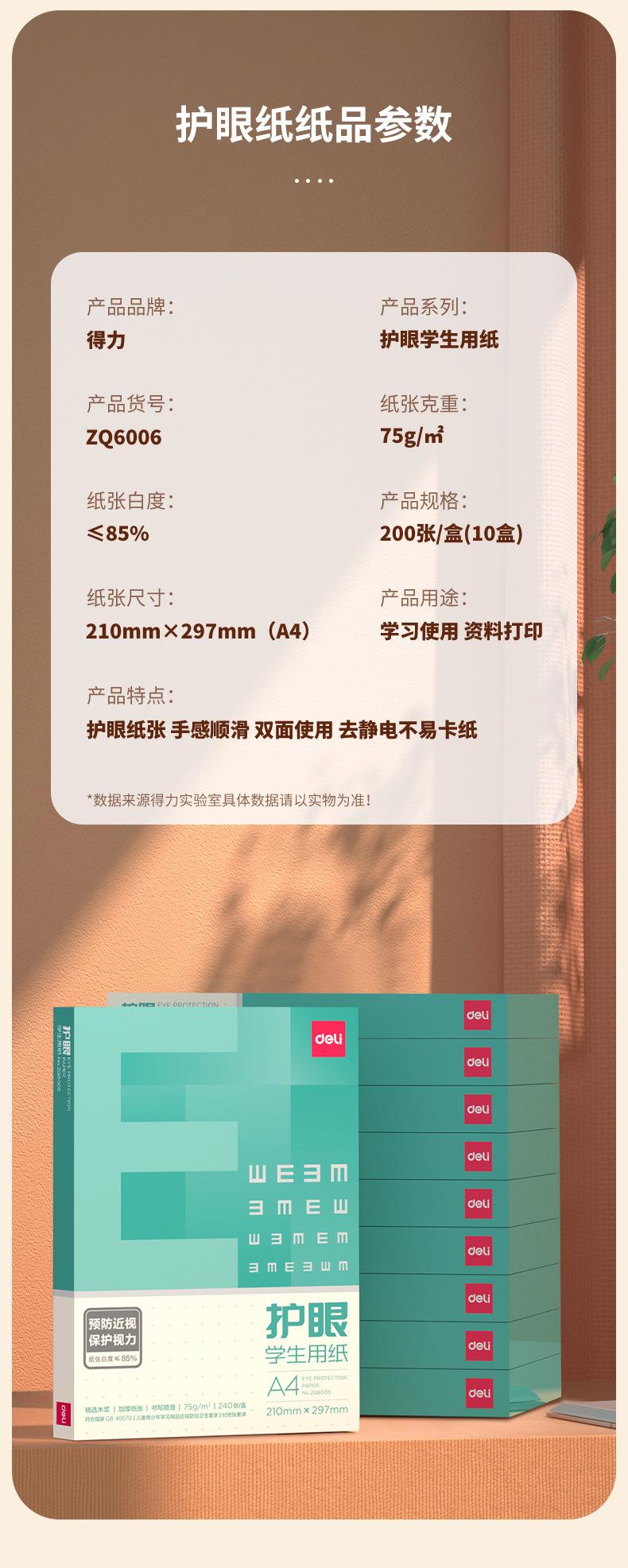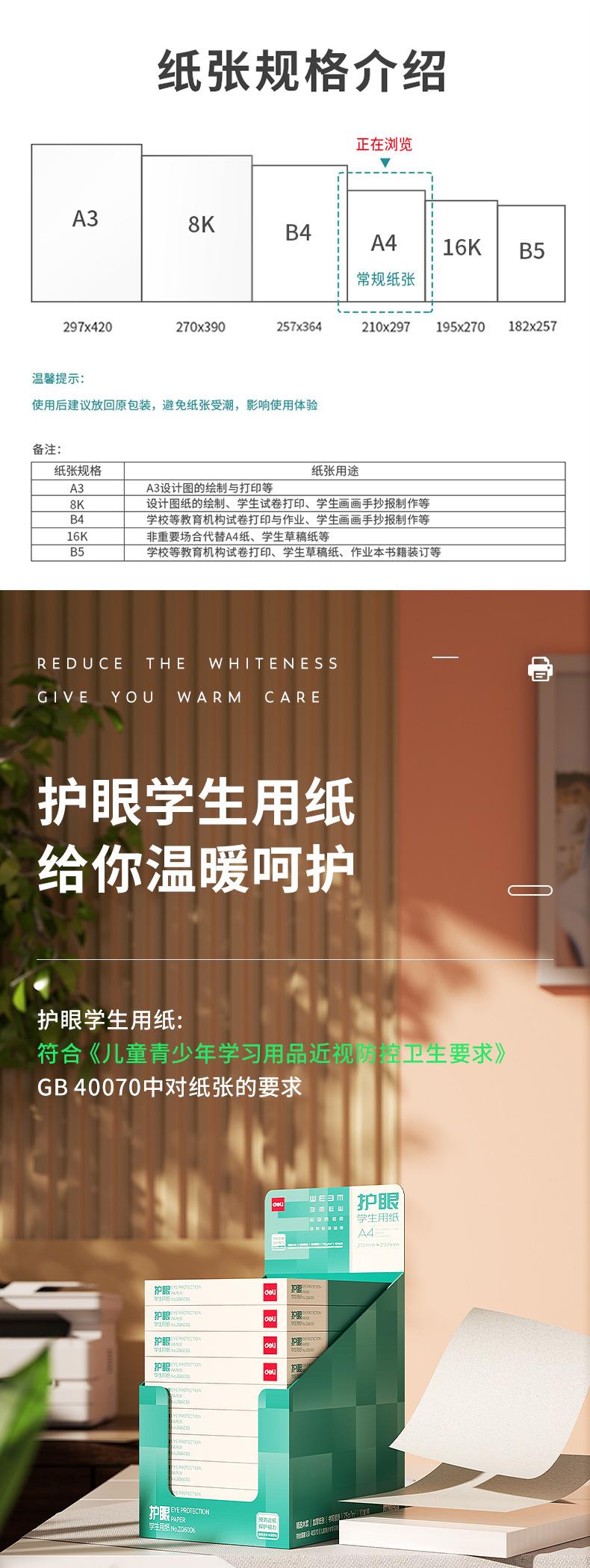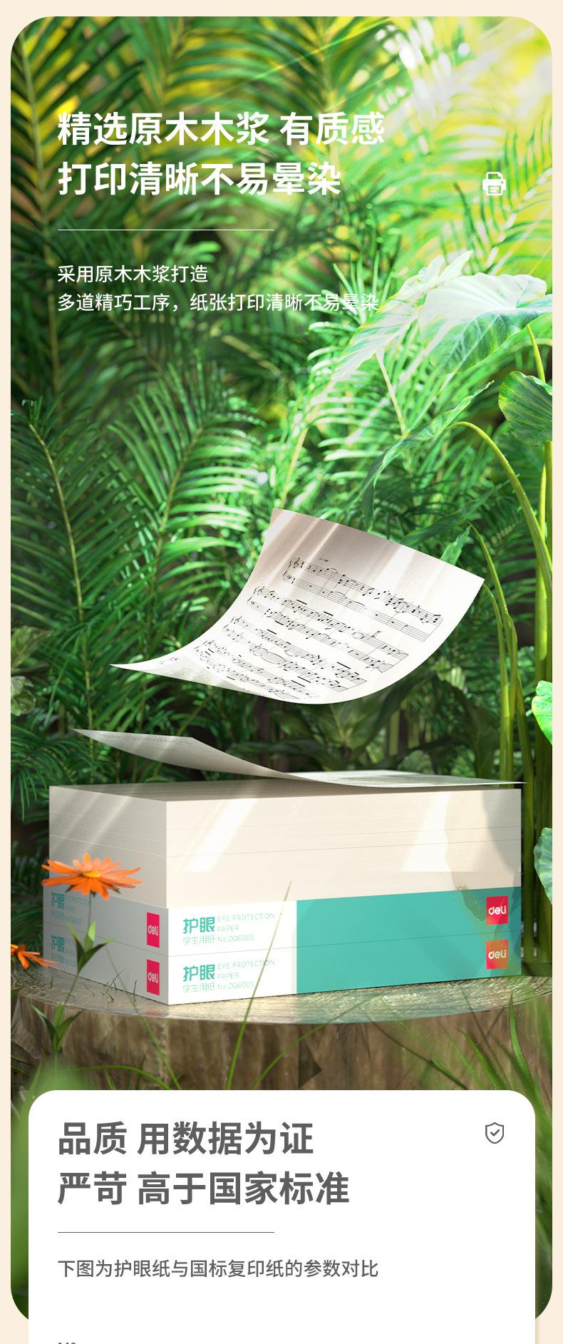 Papel protector para los ojos Deli, papel para estudiantes, papel para fotocopias, impresión a doble cara, A4, suministros de oficina, pulpa de madera de 75 g, caja entera, venta al por mayor