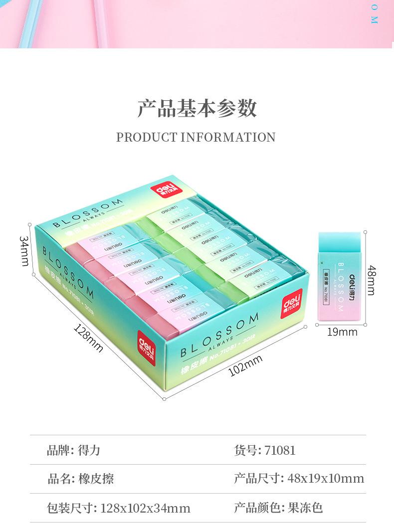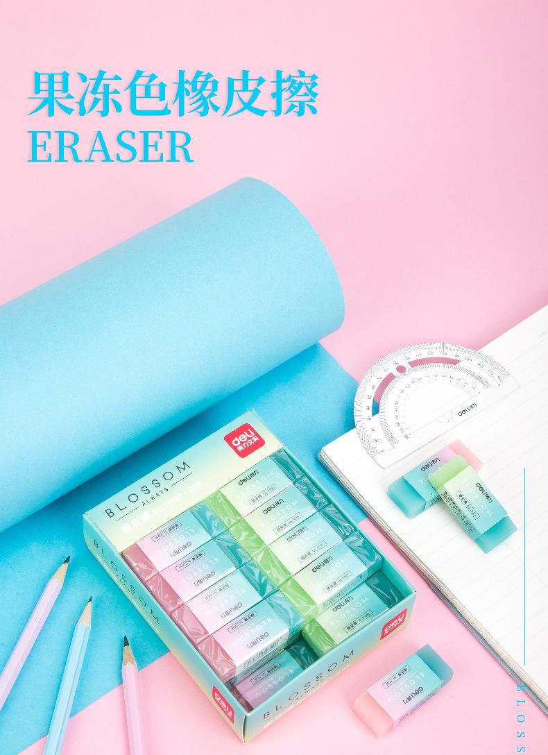 Deli 71081 Borrador translúcido de gelatina, ideal para dibujar, examinar, dibujar, dibujar, papelería para niños y estudiantes.