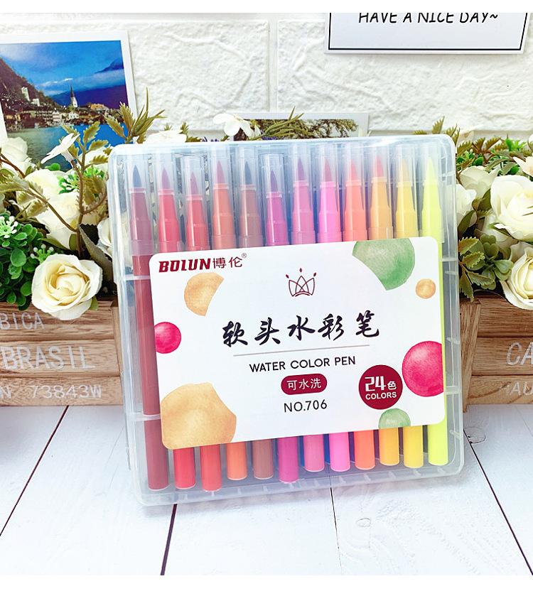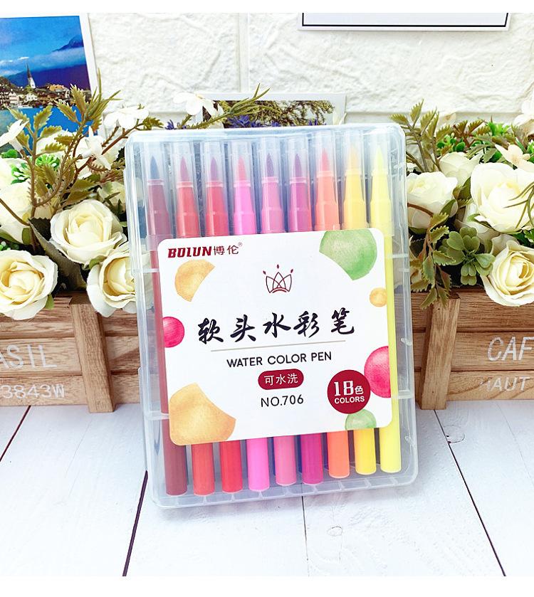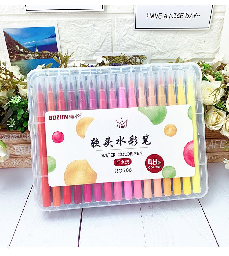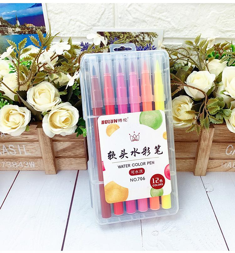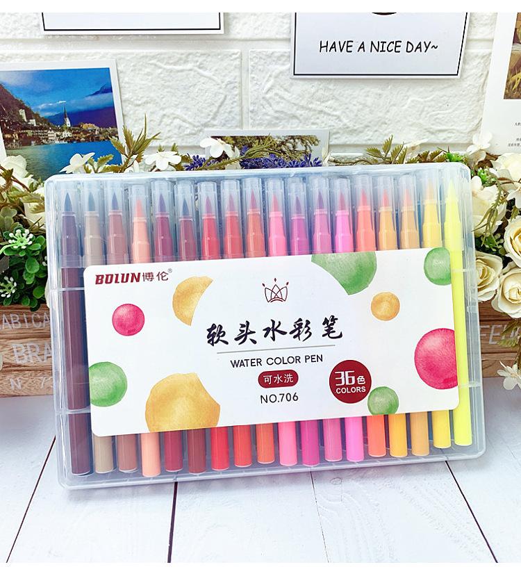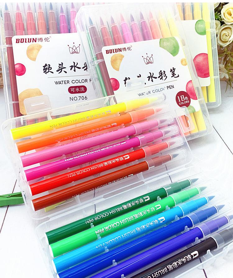 Bolígrafo de acuarela de cabeza suave de 12/18/24/36/48 colores, bolígrafo de pintura artística para niños, bolígrafo de color para grafiti lavable