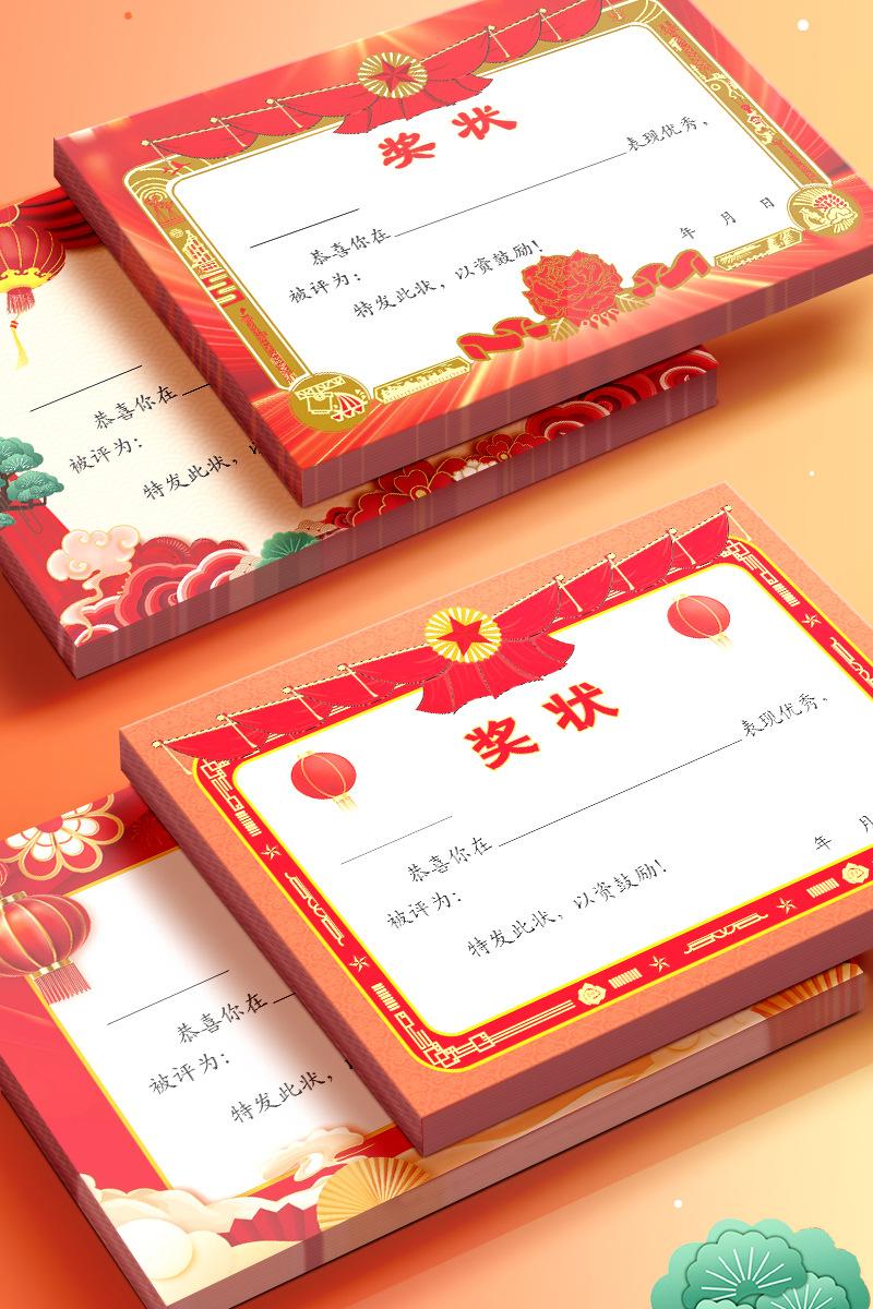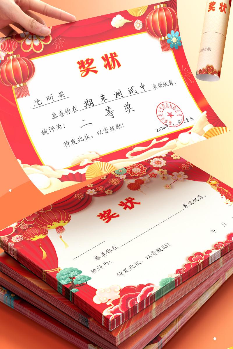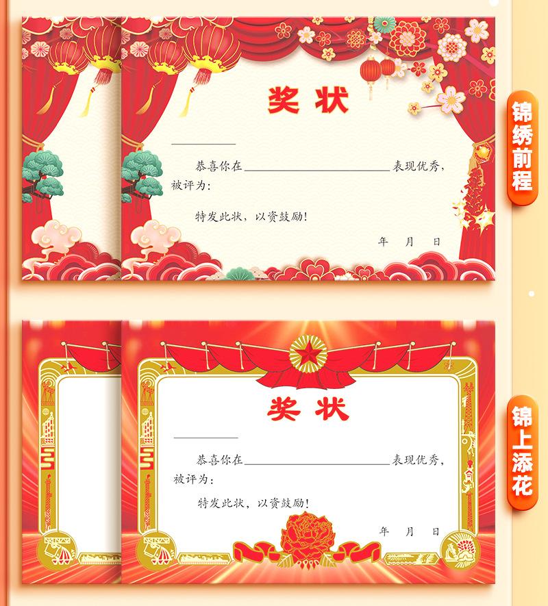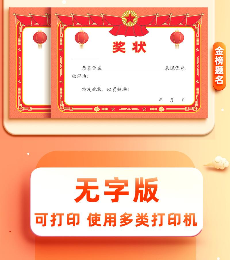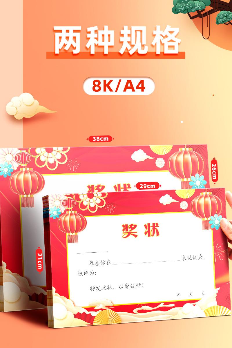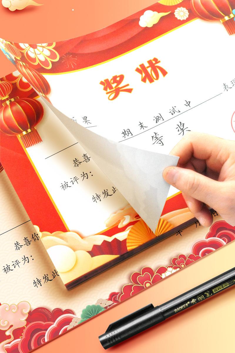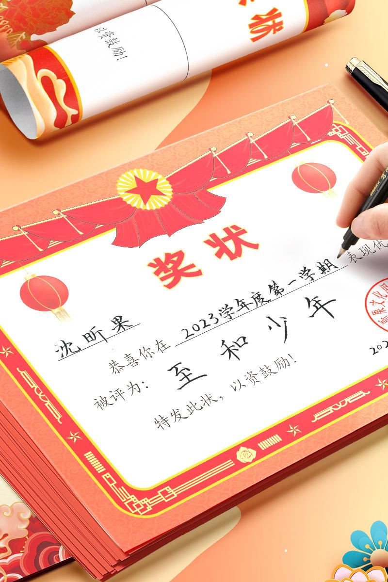 Premio rojo para estudiantes de escuela primaria engrosado A4 8K/16K, premio universal a la excelencia, tres buenos estudiantes, papel en blanco imprimible.