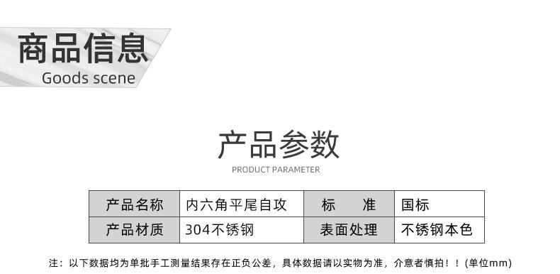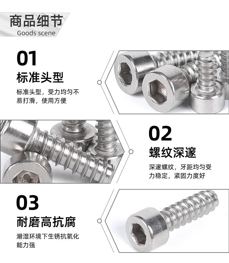 Tornillo autorroscante de acero inoxidable 304 con cabeza cilíndrica y cola plana de hexágono interior M2-M5 0,04 ¥ Comprar ahora
