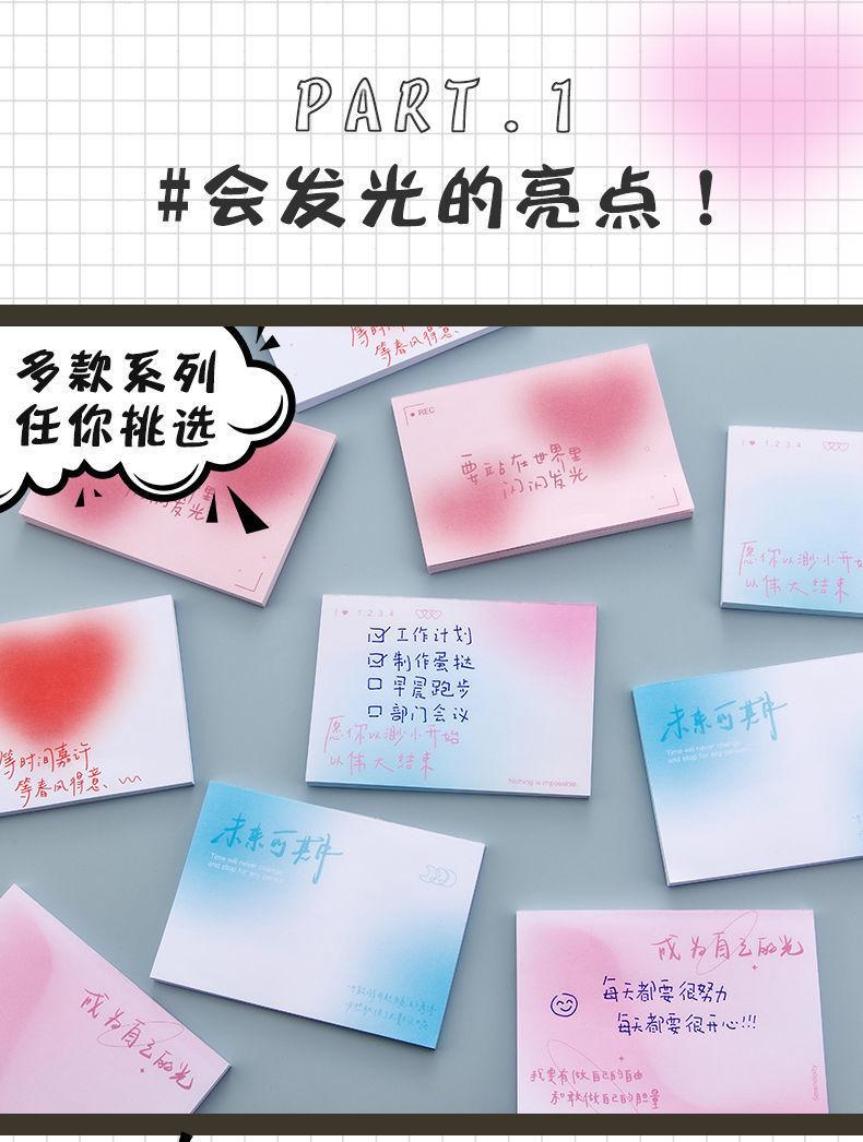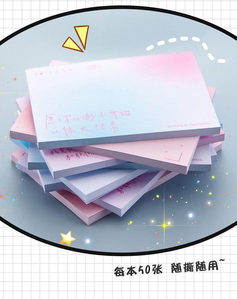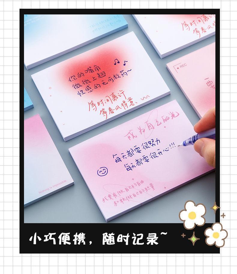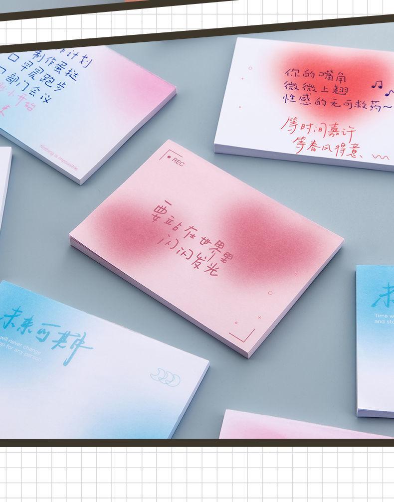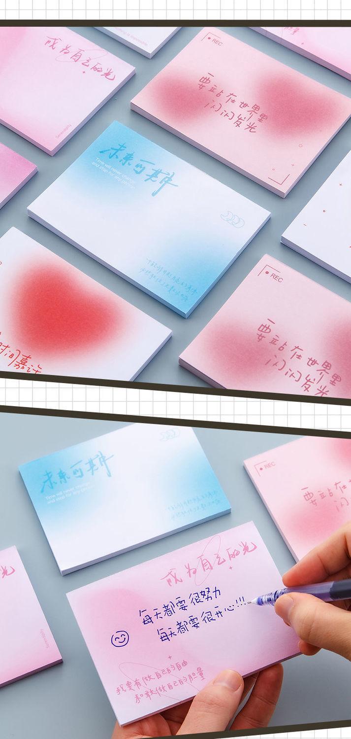 Bloc de notas adhesivo con degradado creativo, estilo ins, de aspecto atractivo, antiadherente, para estudiantes, sencillo