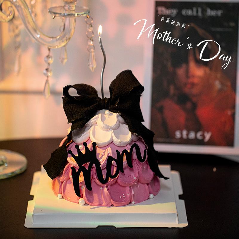 Curve Candle Silver 1 Box, Black Crown MOM Acrylic 10, Black Linen Ribbon Size 10, Black linen ribbon without ...