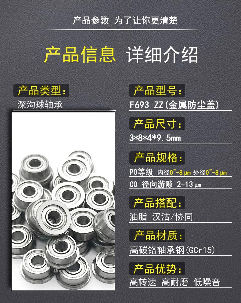 La empresa vende principalmente productos de alta precisión.,Bajo nivel de ruidoalta calidadpequeñotipo rodamiento de bolas, precisiónPuntuaciones de menor a mayor:P0→P6→P5;vibracióncalificaciónPuntuación de menor a mayor:Z2→Z3→Z4;autorizacióngeneralmenteparaC0,Puede basarse en el uso realRealizar ajustes numéricos.