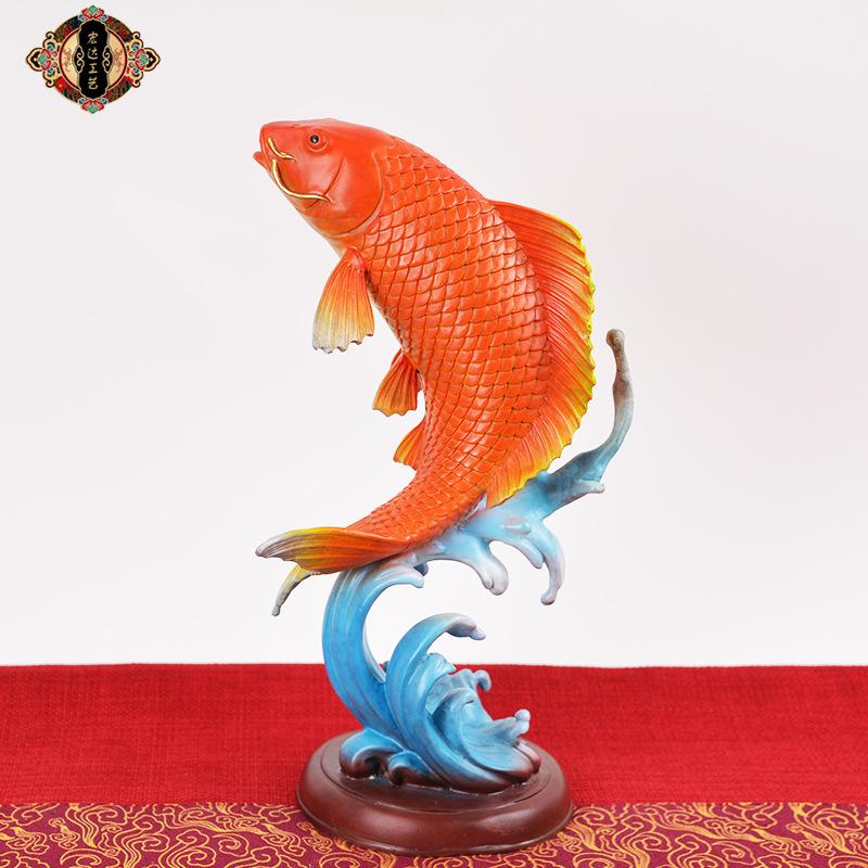 Hongda Latón Puro Carpa Pintada Saltando Pórtico Entrada Hogar Oficina Adornos de Regalo Pez de Cobre