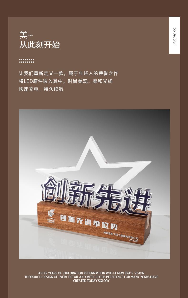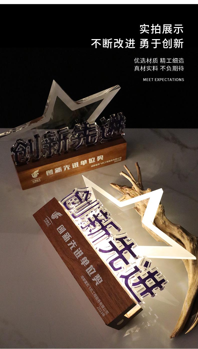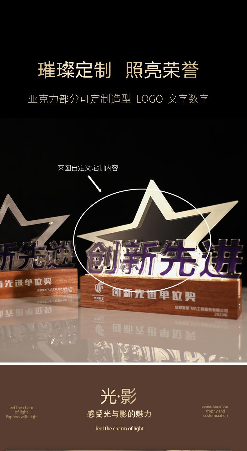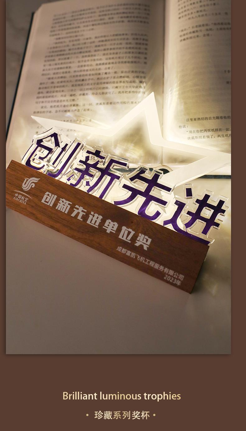 Reunión Anual de la Empresa Trofeo de Madera Maciza Acrílico Fabricación Medalla de Carga Luminosa Aniversario de la Empresa Construcción de Liga Regalo Conmemorativo