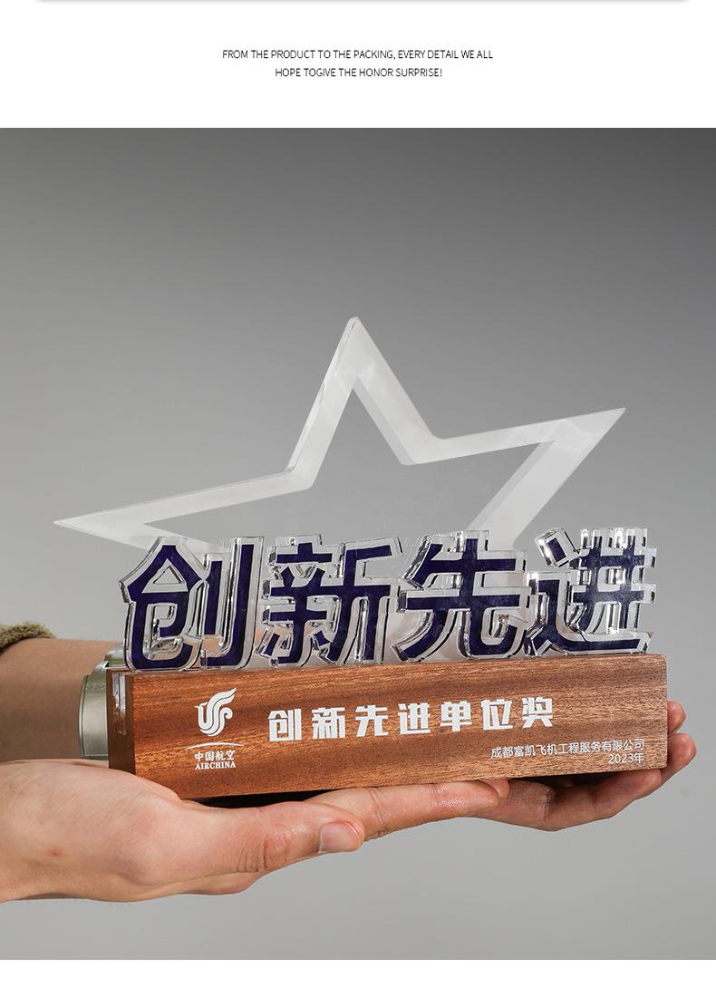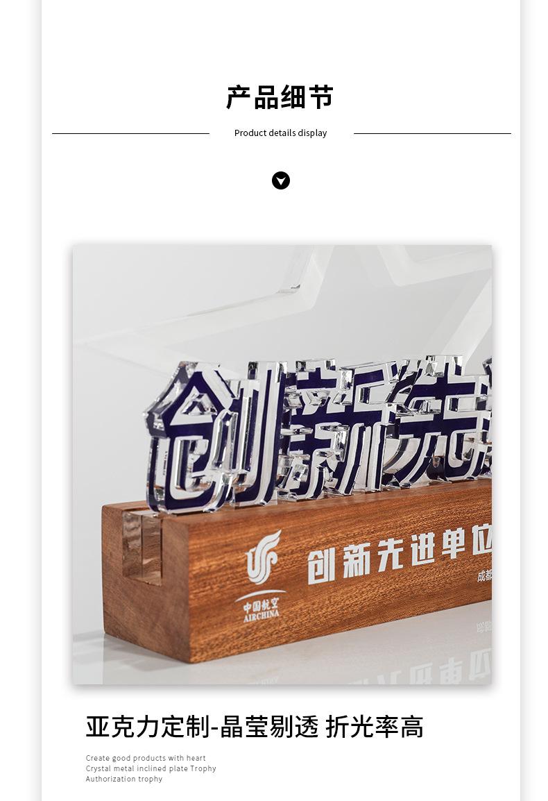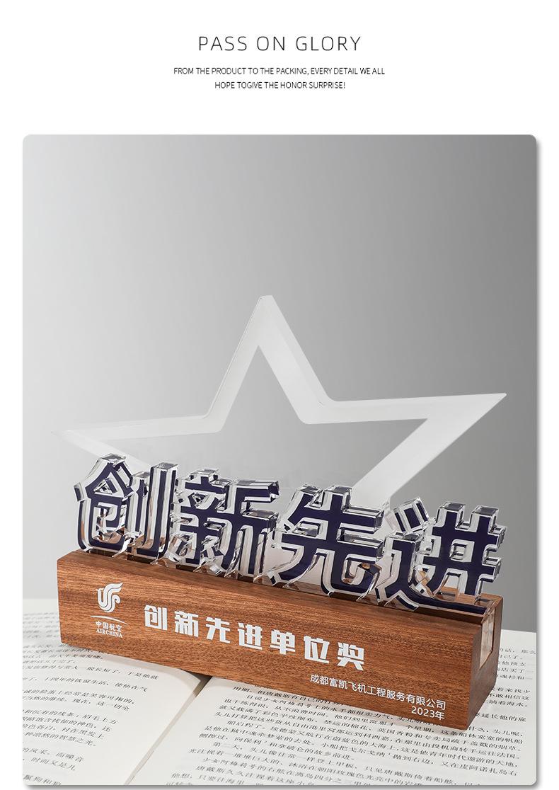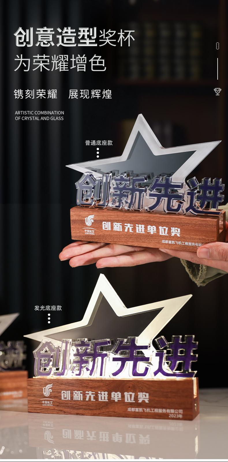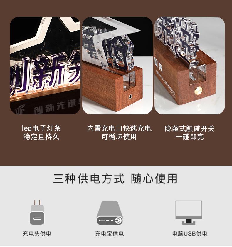 Reunión Anual de la Empresa Trofeo de Madera Maciza Acrílico Fabricación Medalla de Carga Luminosa Aniversario de la Empresa Construcción de Liga Regalo Conmemorativo