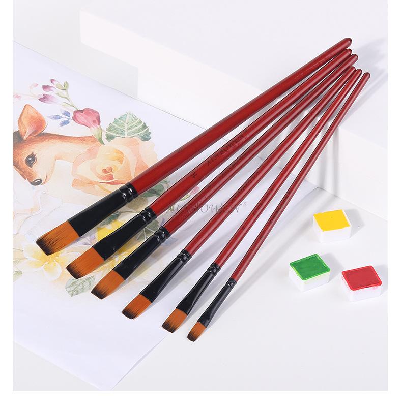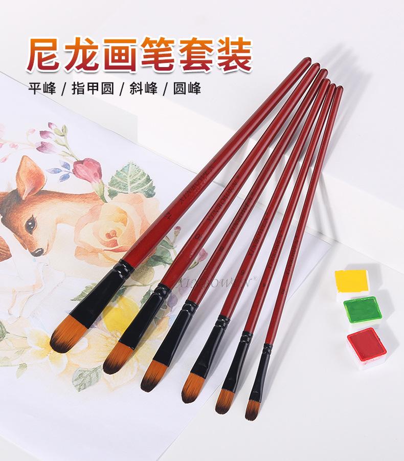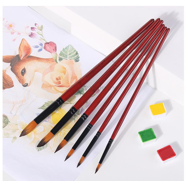Compra Pincel de Acuarela de Pelo de Nailon Transfronterizo Mango de Madera Marrón Paquete de 6 Pincel de Arte Estudiante Pintado a Mano Pincel para Pintura al Óleo Venta al por Mayor al por mayor en Joom.pro