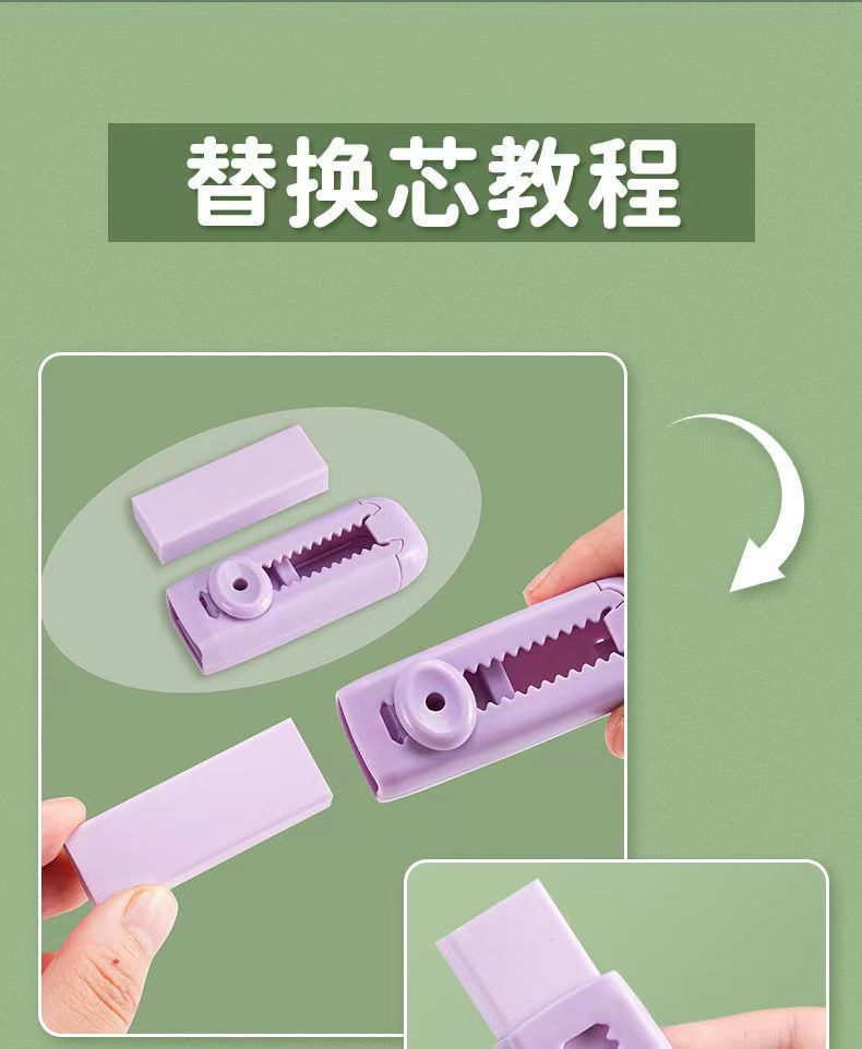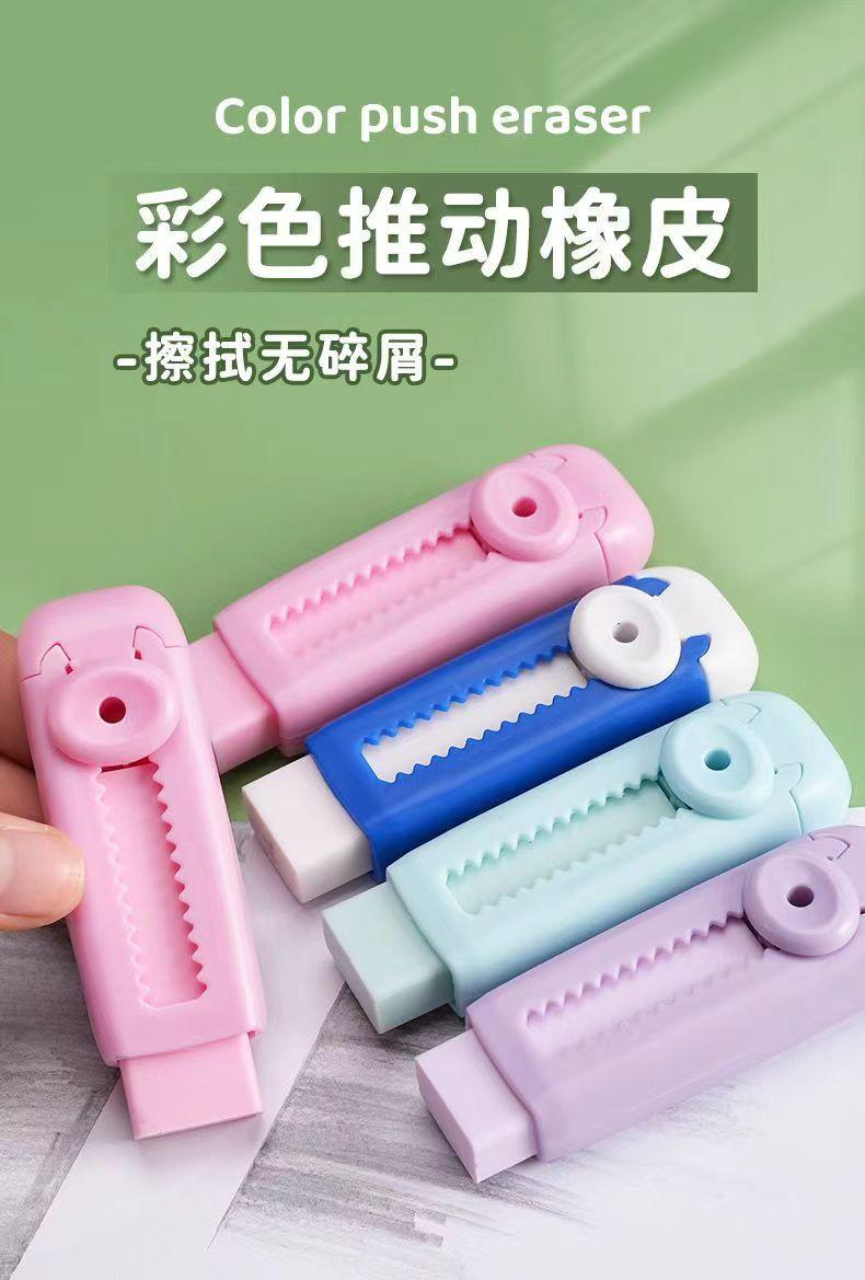 Borrador de empuje y tracción, súper limpio, sin costuras, retráctil, sin escoria, borrador para estudiantes de primaria, lindo y nuevo material de papelería