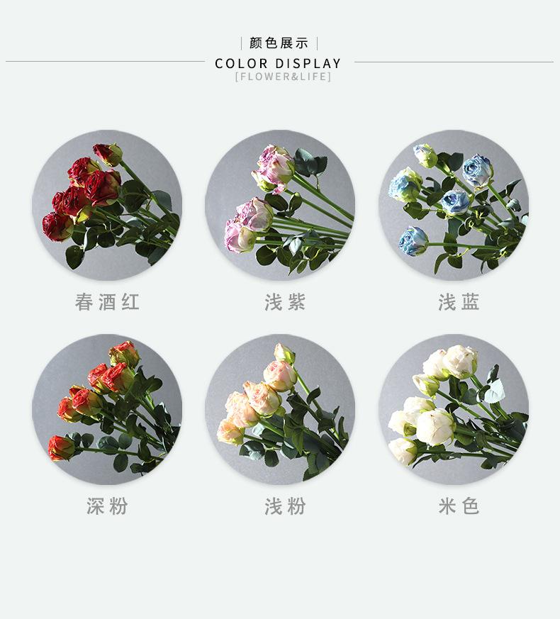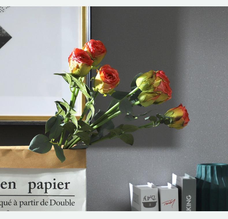 Simulación de ramo de rosas de 3 cabezas con borde tostado, mesa de centro, mueble de TV, adornos, accesorios de fotos de boda chinos, simulación de flores de seda