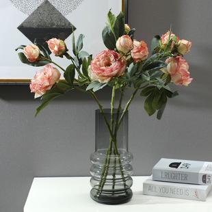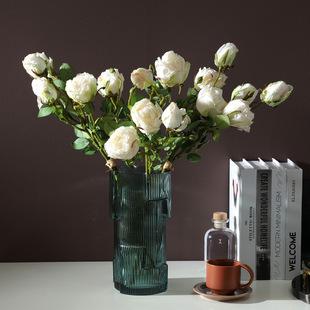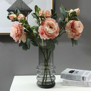 Simulación de peonía, adornos para gabinete de TV, flores artificiales multicapa con borde horneado de 3 cabezas, accesorios para fotos de boda, flores de simulación, flores de seda