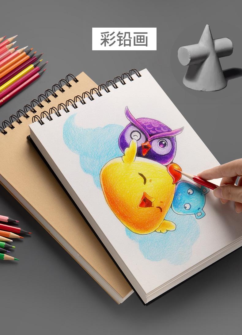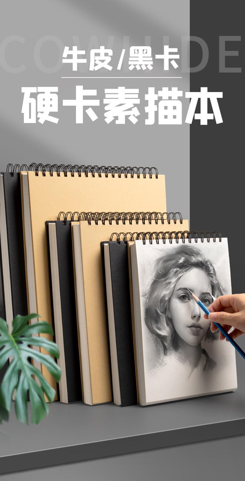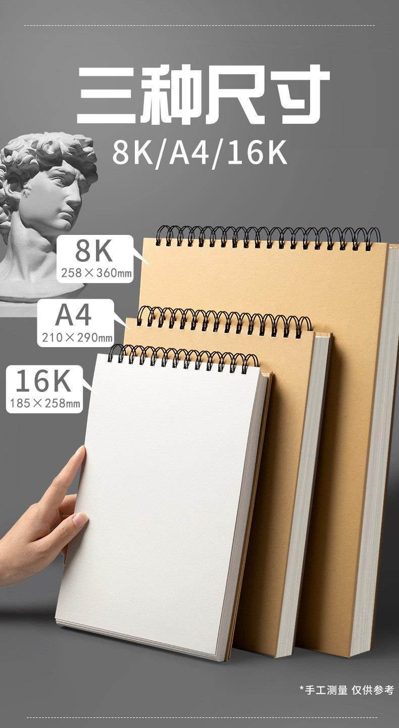 Libro de Bocetos Flip-Up en Blanco con Espiral Libro de Marcas de Piel de Vaca Libro de Dibujo 8K Engrosado A4 Libro de Dibujo para Niños