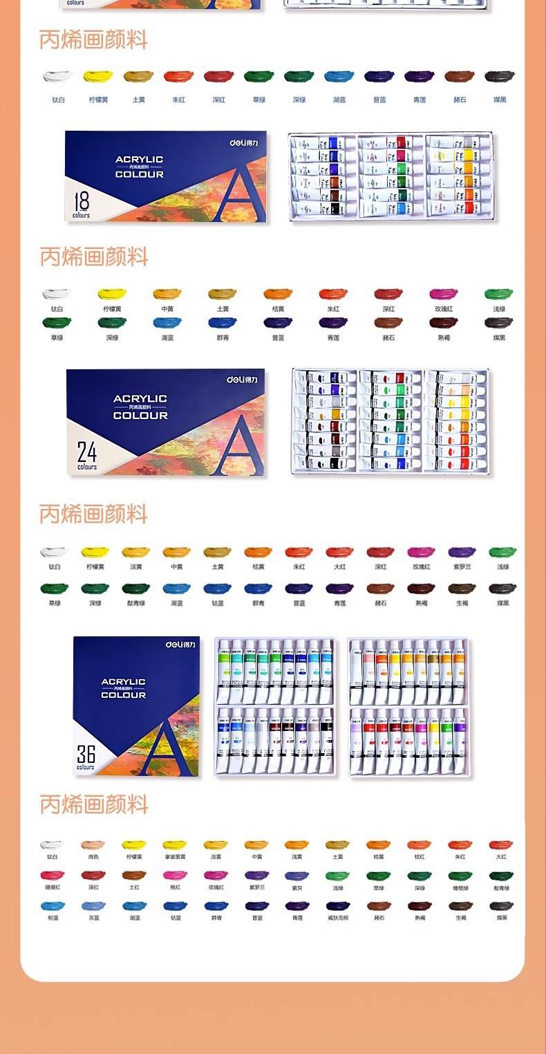 Deli Pigmento Acrílico 12 Colores 241 con 36 Colores 12ml5ml Pigmento para Dibujo Artístico Graffiti para Principiantes para Estudiantes