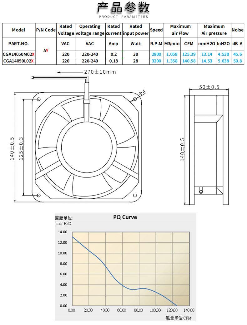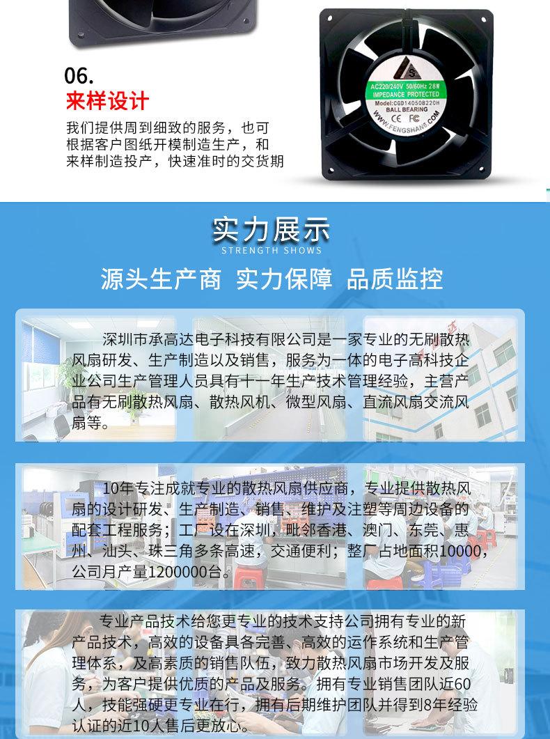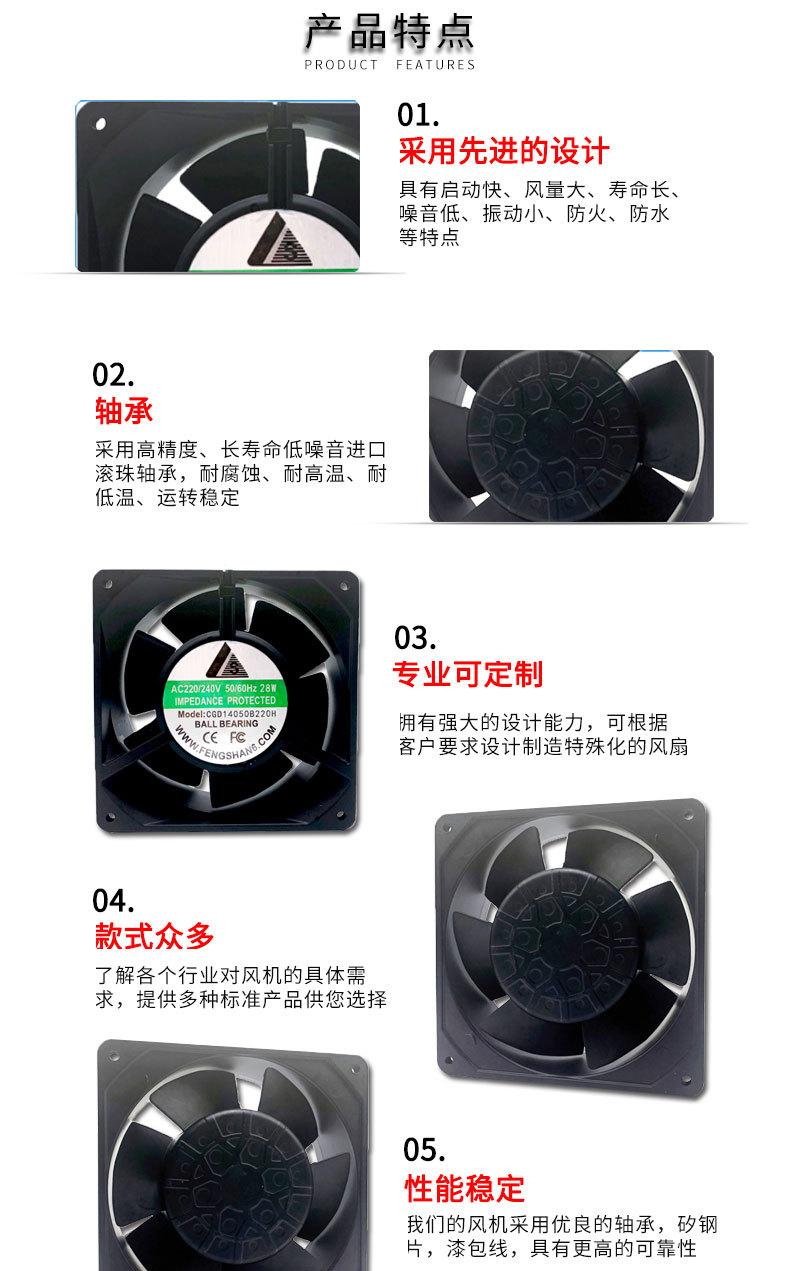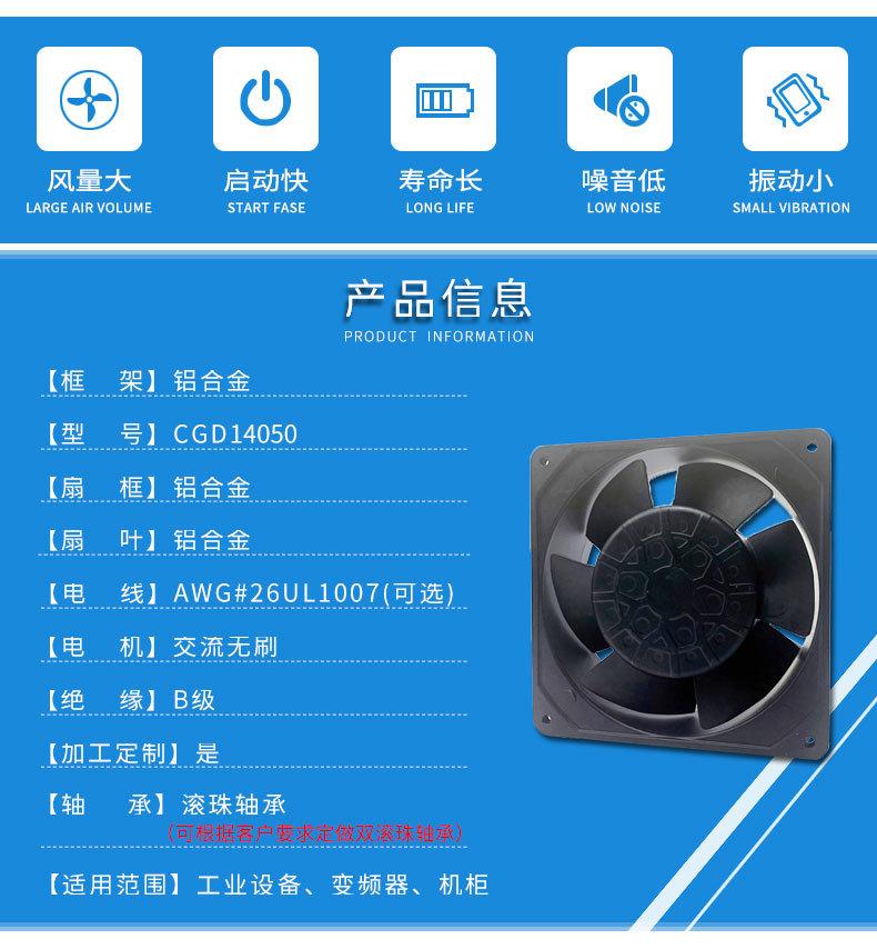Ventilador de CA de 220 V, ventilador de refrigeración 14050, protección ambiental, fabricantes de fuentes anticongelantes.