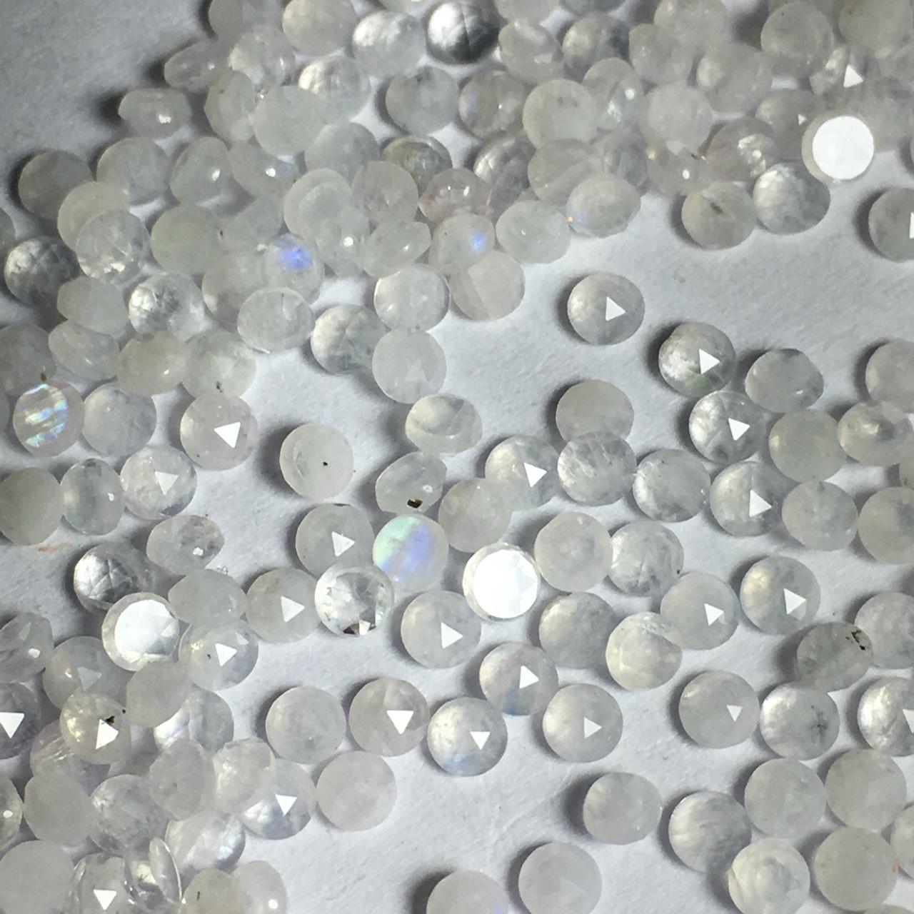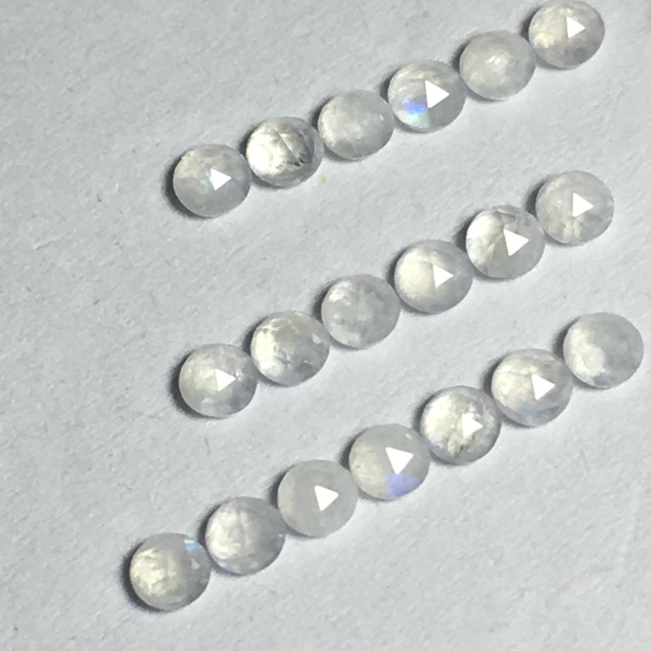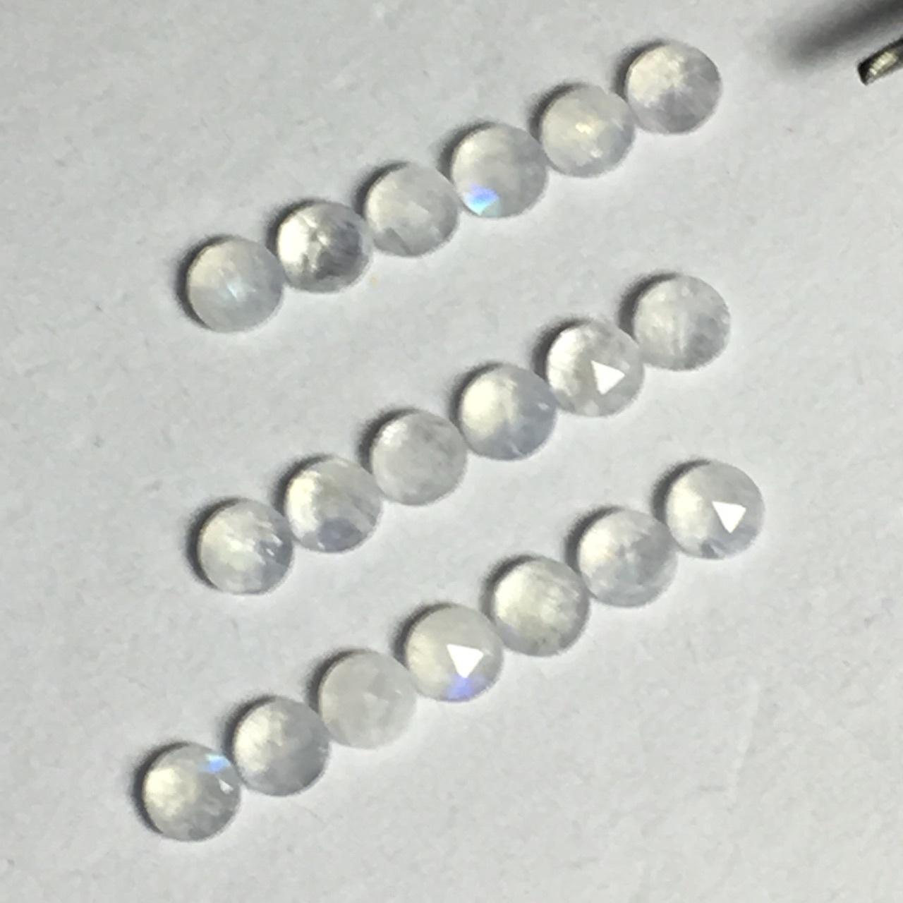 Luz de luna azul natural semitransparente 2. Joyería con acabado tallado en rosa plana y redonda de 5 mm y 3 mm con piedra