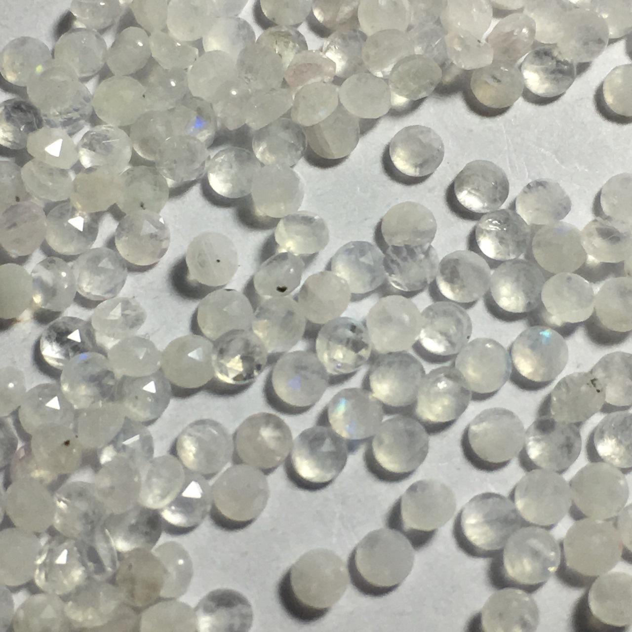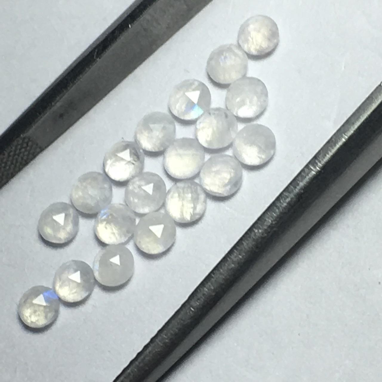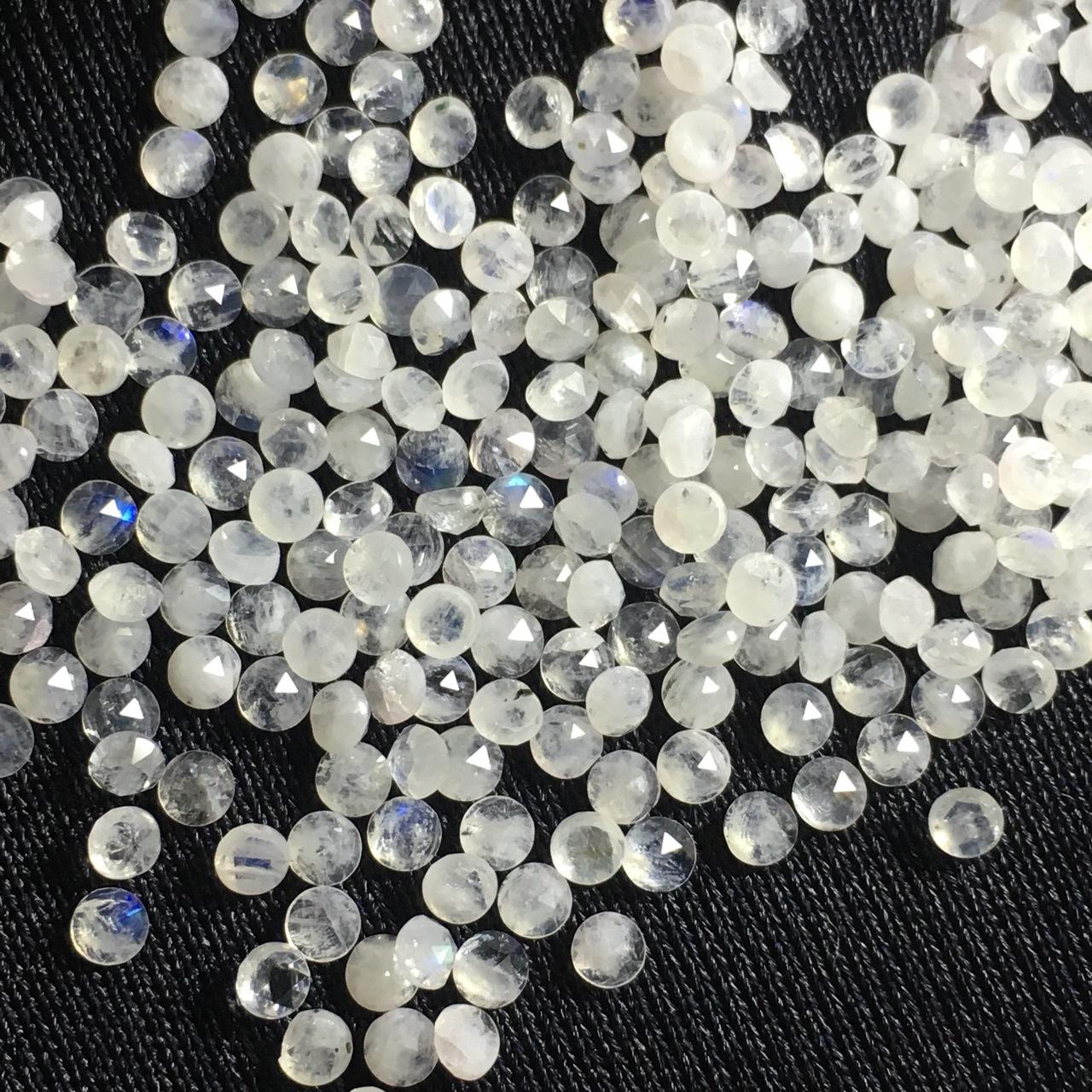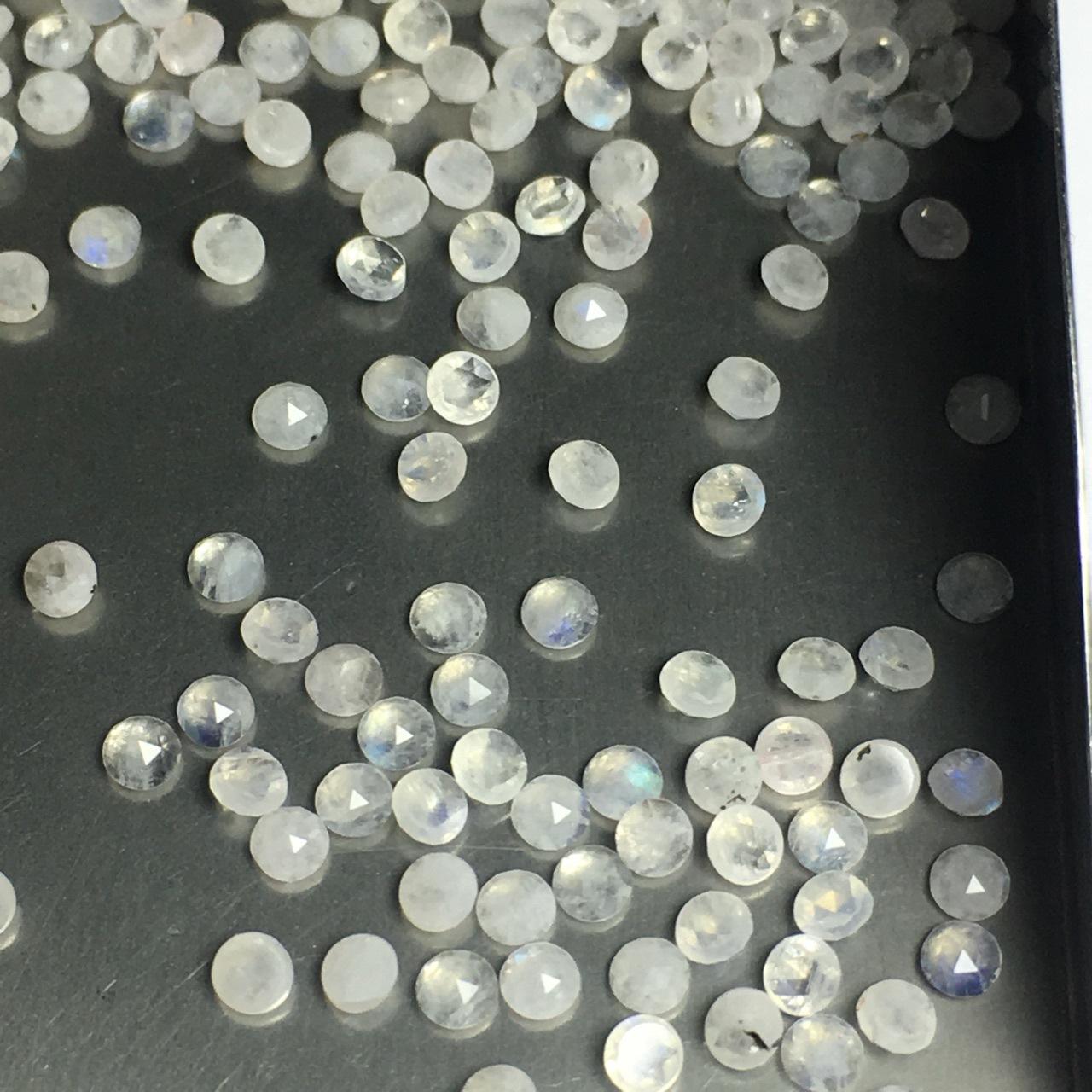 Luz de luna azul natural semitransparente 2. Joyería con acabado tallado en rosa plana y redonda de 5 mm y 3 mm con piedra