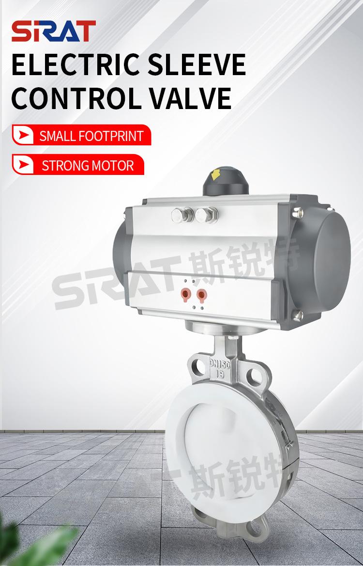 Válvula de mariposa neumática D671F4-16P de acero inoxidable tipo wafer con revestimiento de flúor, resistente a ácidos y álcalis, con corte químico.