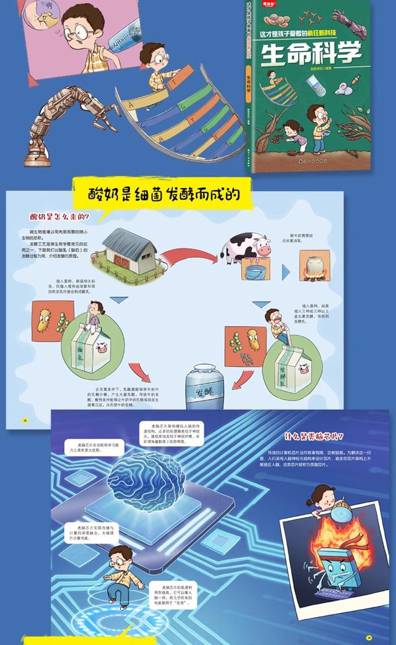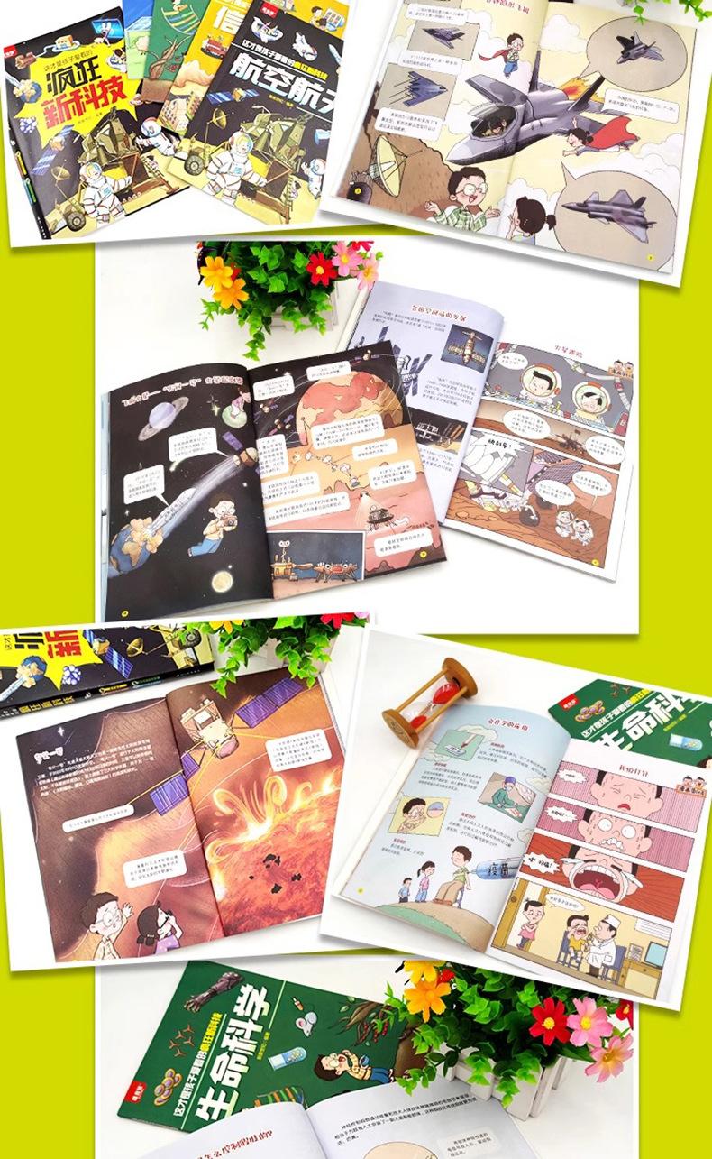 Estos son los nuevos y locos cómics de ciencia y tecnología que a los niños les encanta ver.. Libros de divulgación científica para niños, iluminación científica, educación temprana, 4 volúmenes
