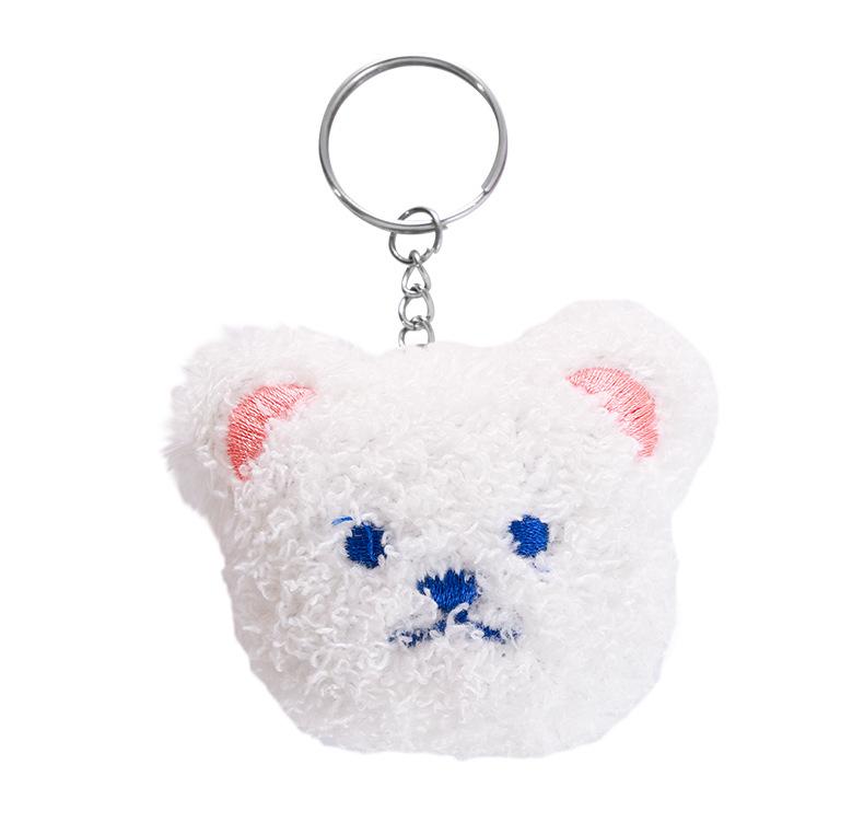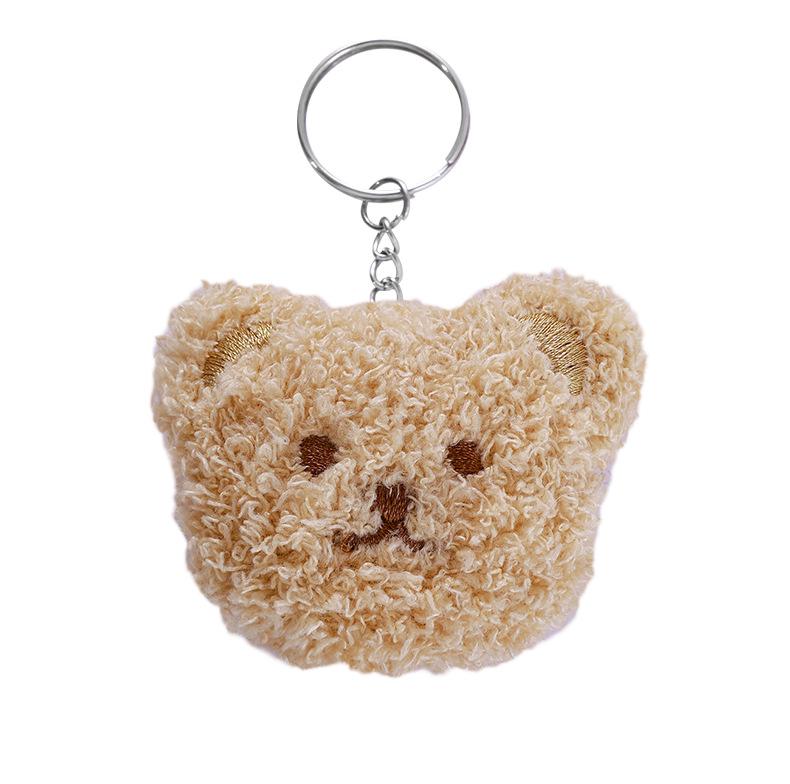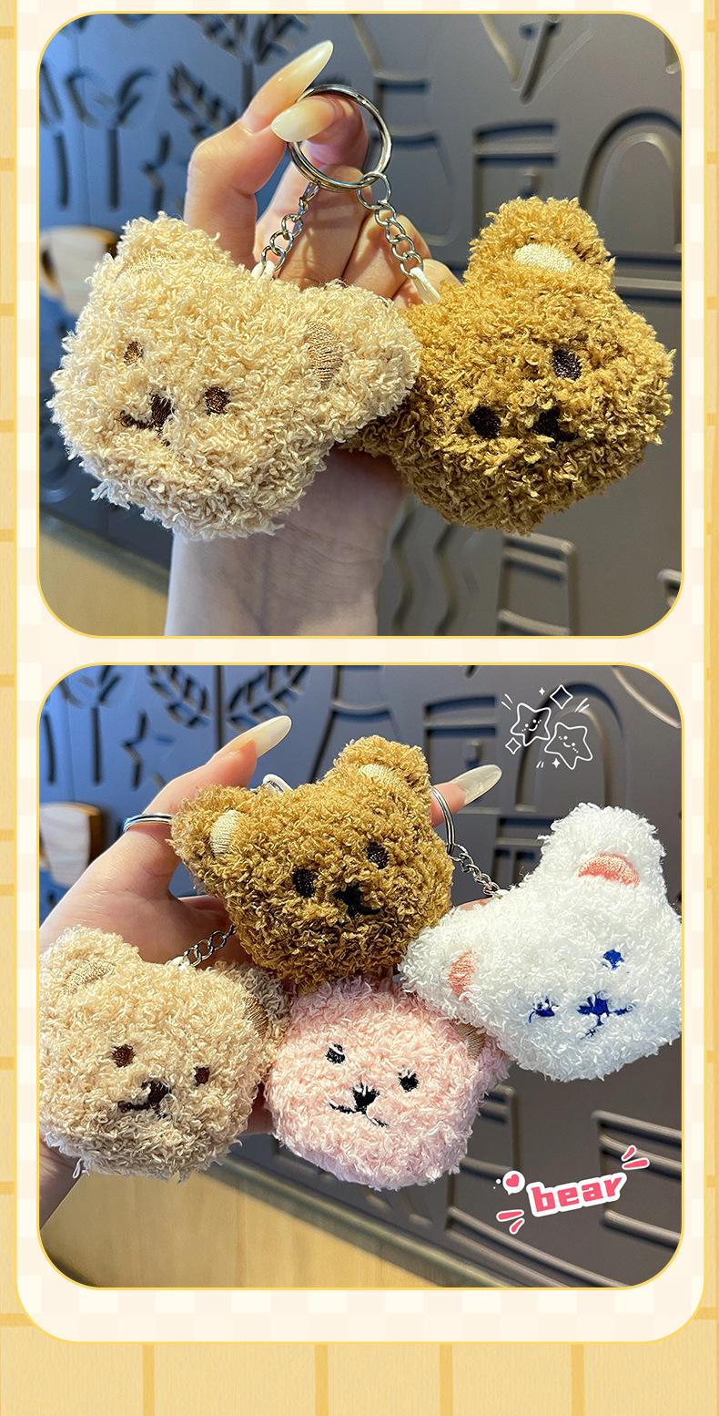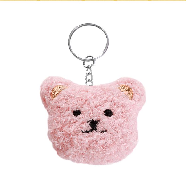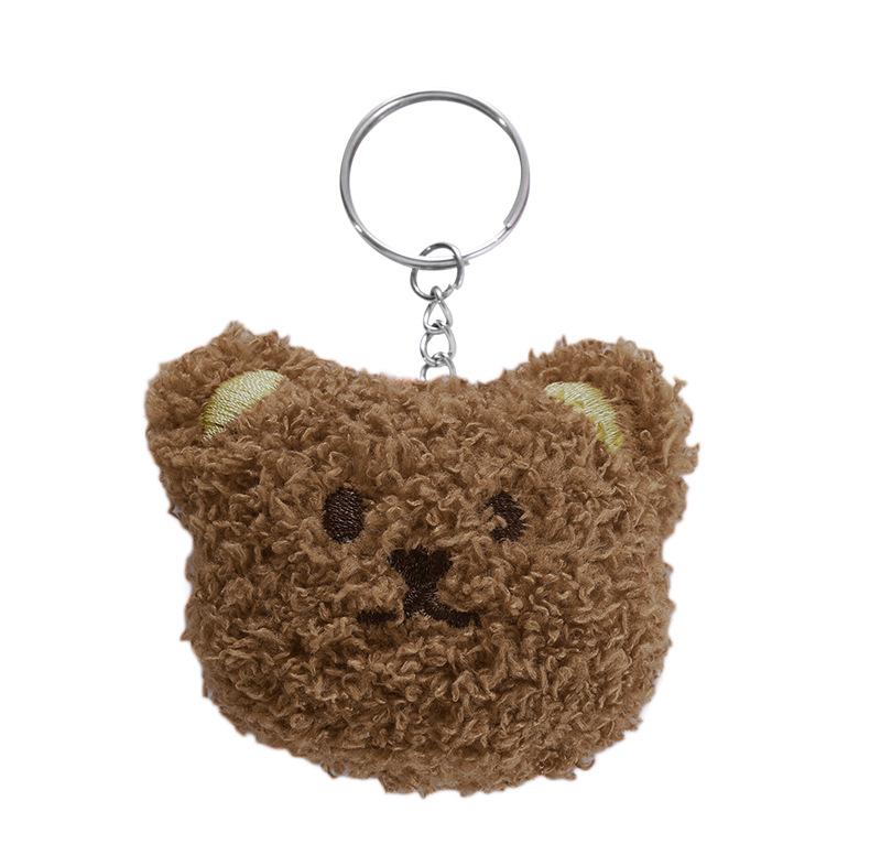 Lindo llavero de peluche con forma de cabeza de oso de dibujos animados para mujer, bolso de peluche, mochila, llavero colgante, adornos colgantes