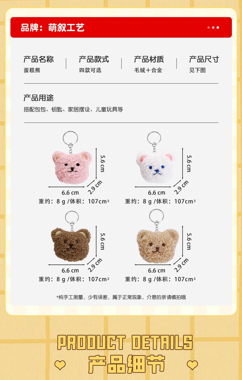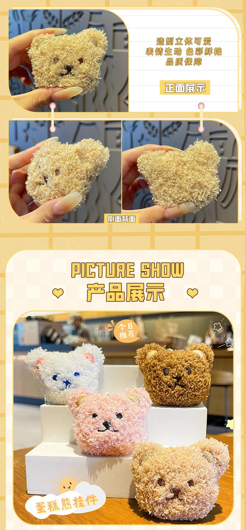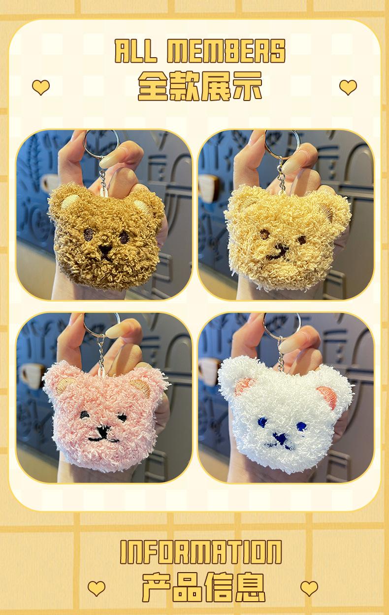 Lindo llavero de peluche con forma de cabeza de oso de dibujos animados para mujer, bolso de peluche, mochila, llavero colgante, adornos colgantes