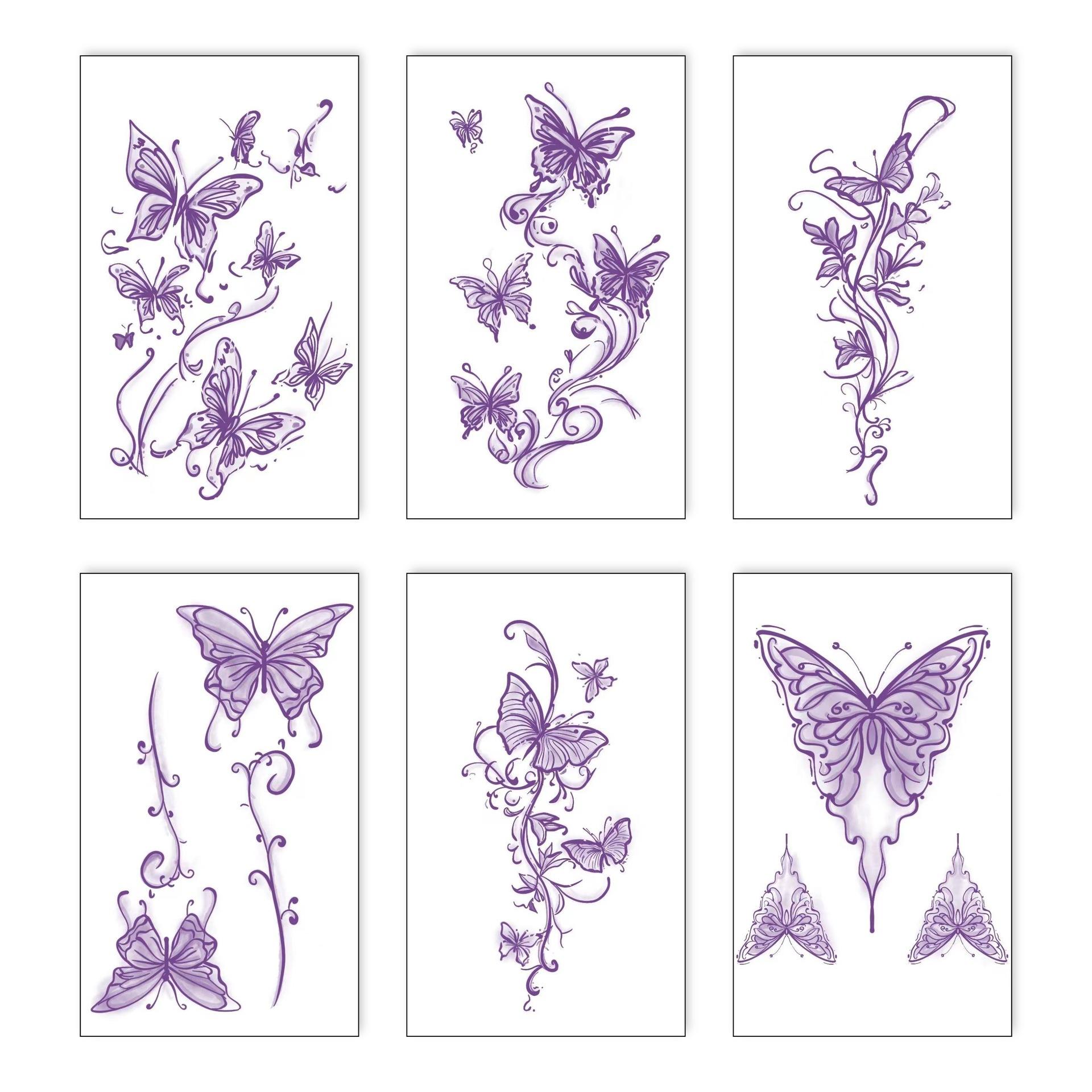 Suministro Transfronterizo Pegatinas de Tatuaje de Mariposa Pegatinas de Tatuaje de Mariposa Coloridas de Alta Gama Sexy Chica Clavícula Tobillo Cicatriz