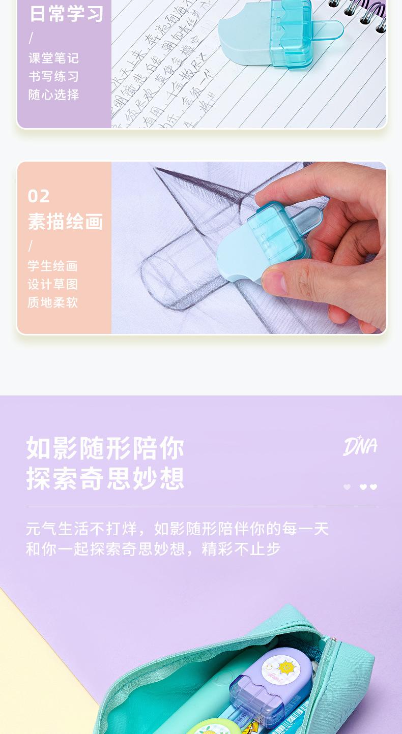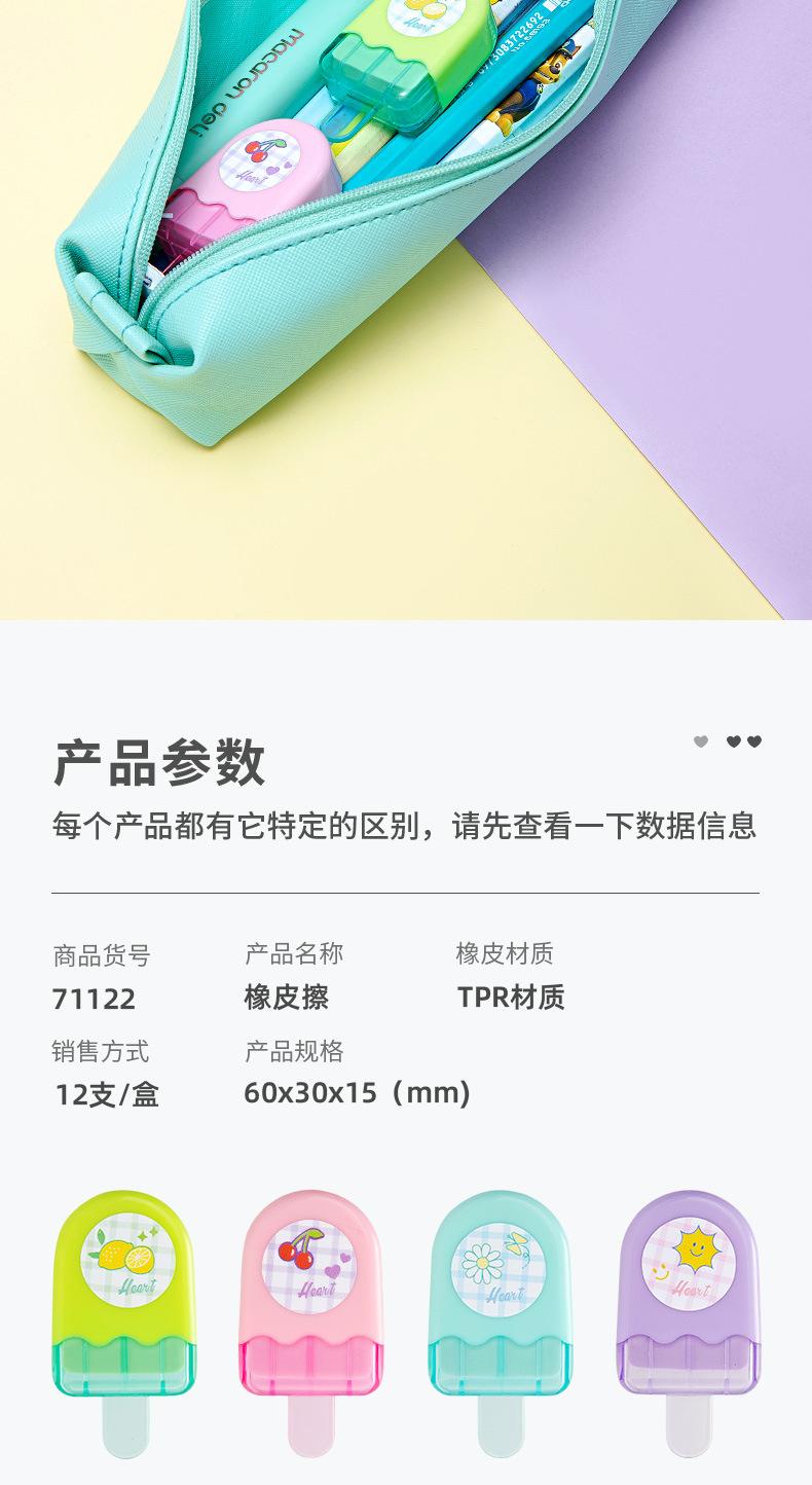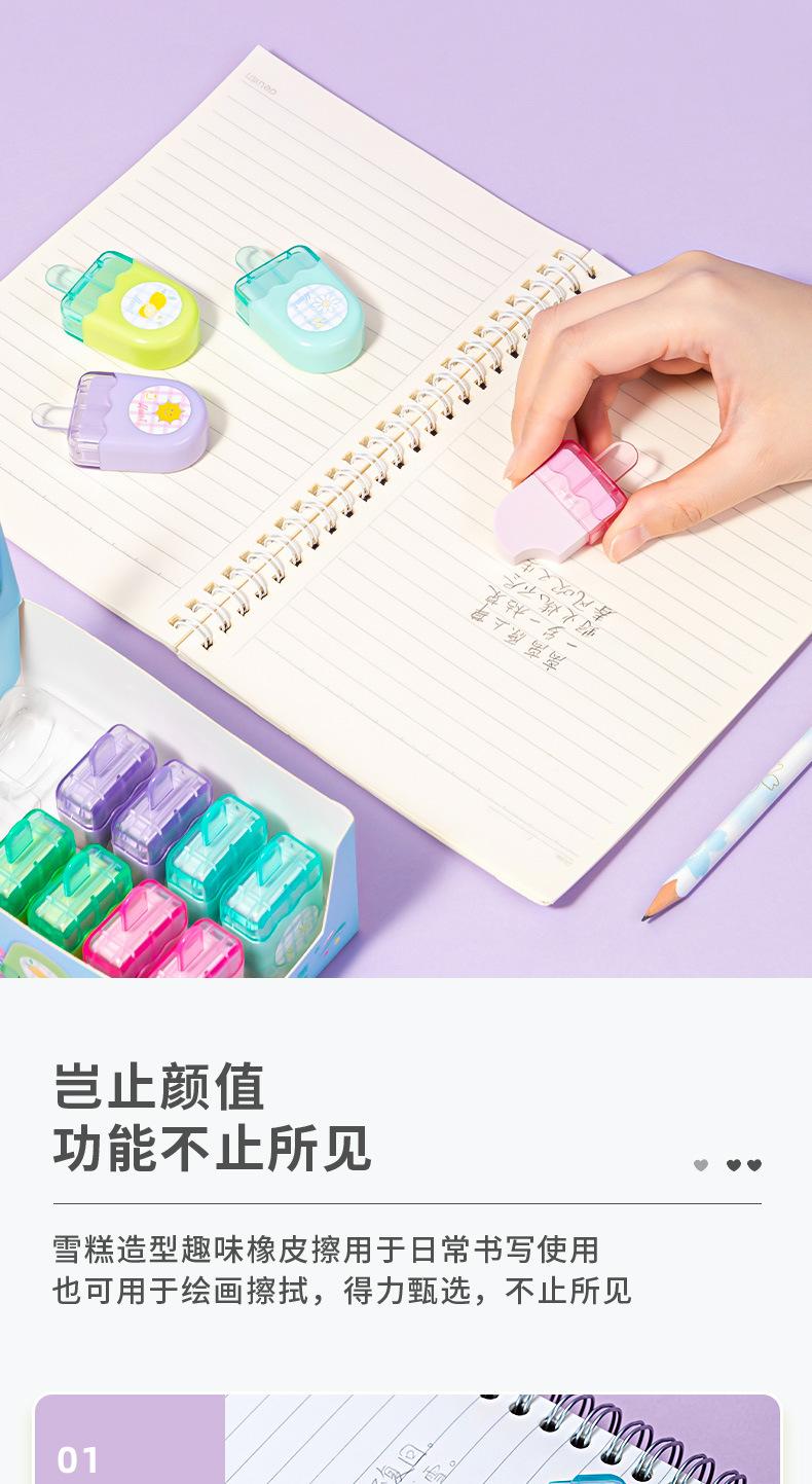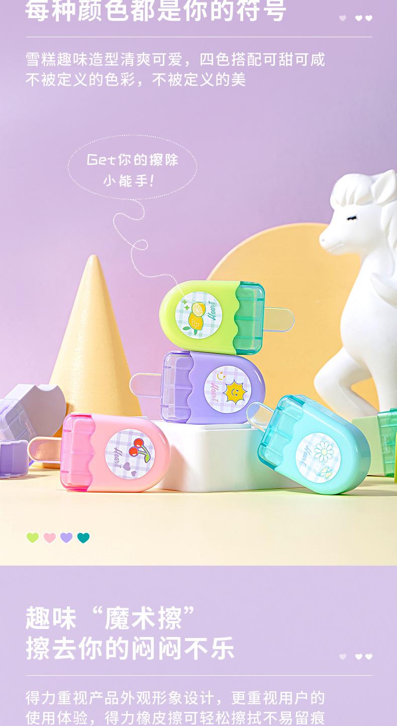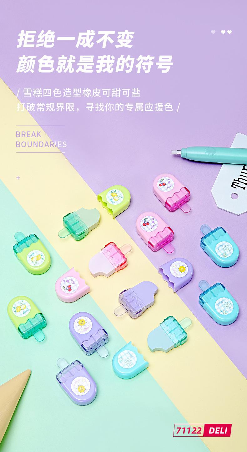 Deli 71122 Borrador de paleta, lindo borrador creativo, forma de helado, borrador de estudiante de dibujos animados coloridos