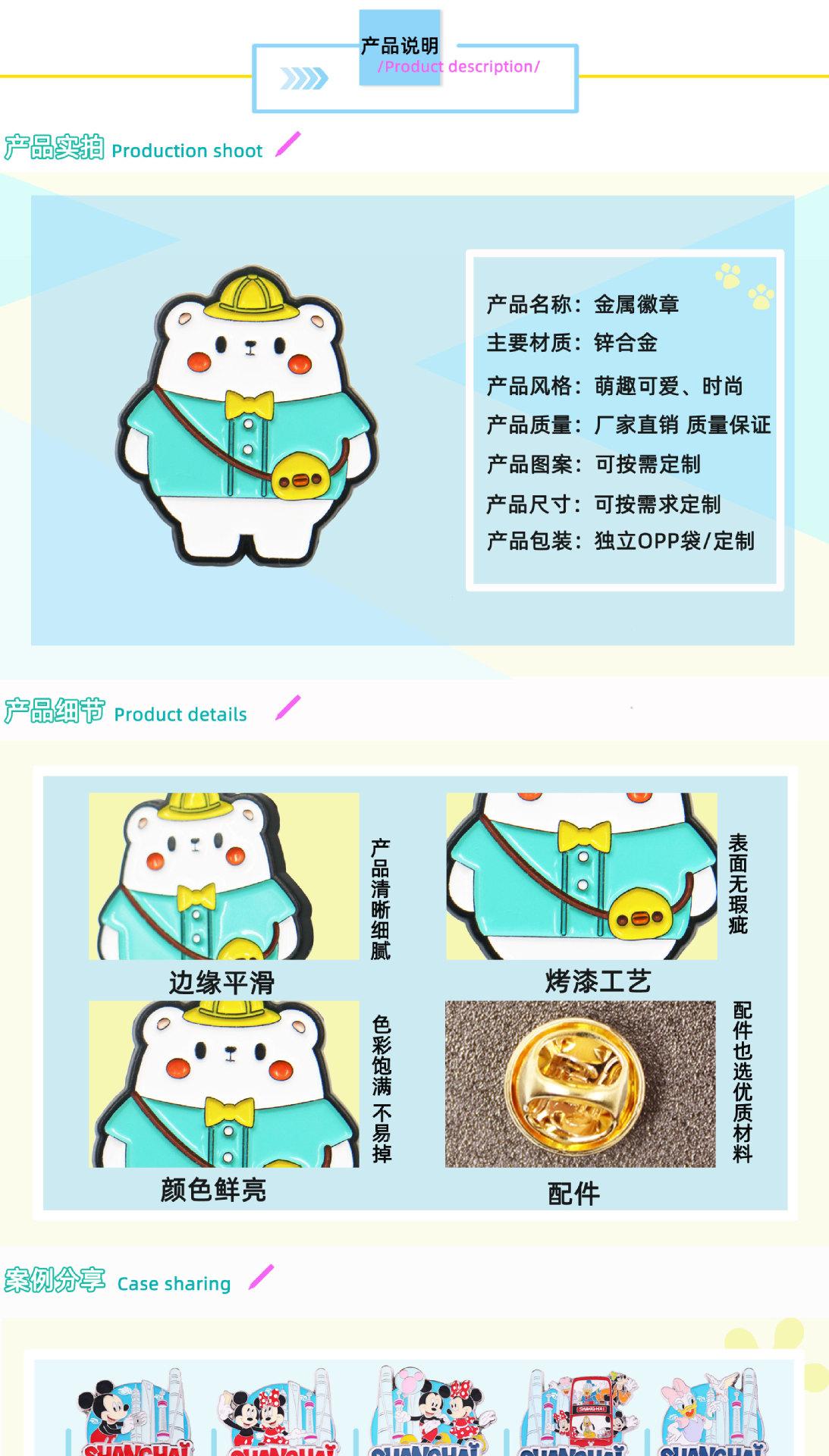 Insignia de metal personalizada con pintura de esmalte de alta calidad, hebilla de mariposa, medalla dinámica escolar de dibujos animados personalizada