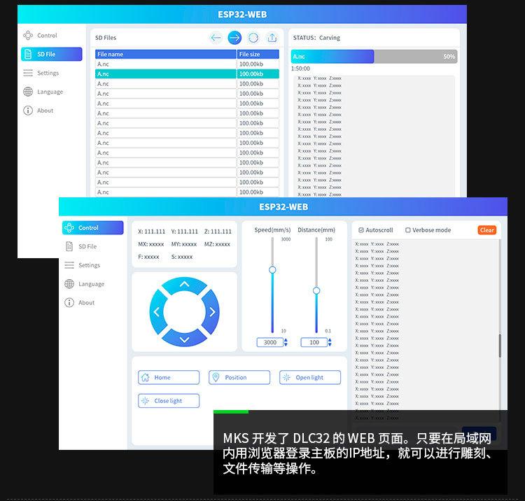 | https://github.com/makerbase-mks/MKS-DLC32Tutorial en video en la estación b:https://www.bilibili.com/video/BV1og411N7mh?spm_id_from=333.999.0.0 |