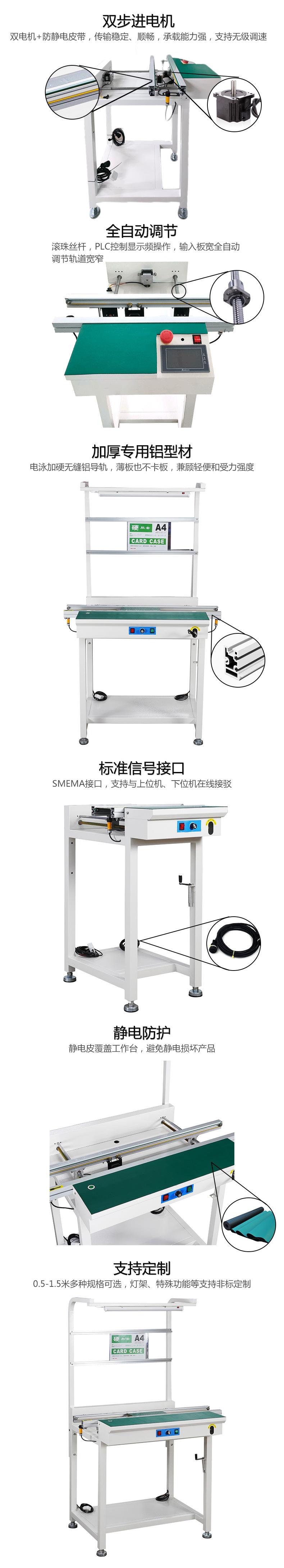 4. Sistema de control PLC, ajuste eficiente y automático del ancho según el ancho de la placa PCB, husillo de bolas, para asegurar el paralelismo de los carriles de transporte