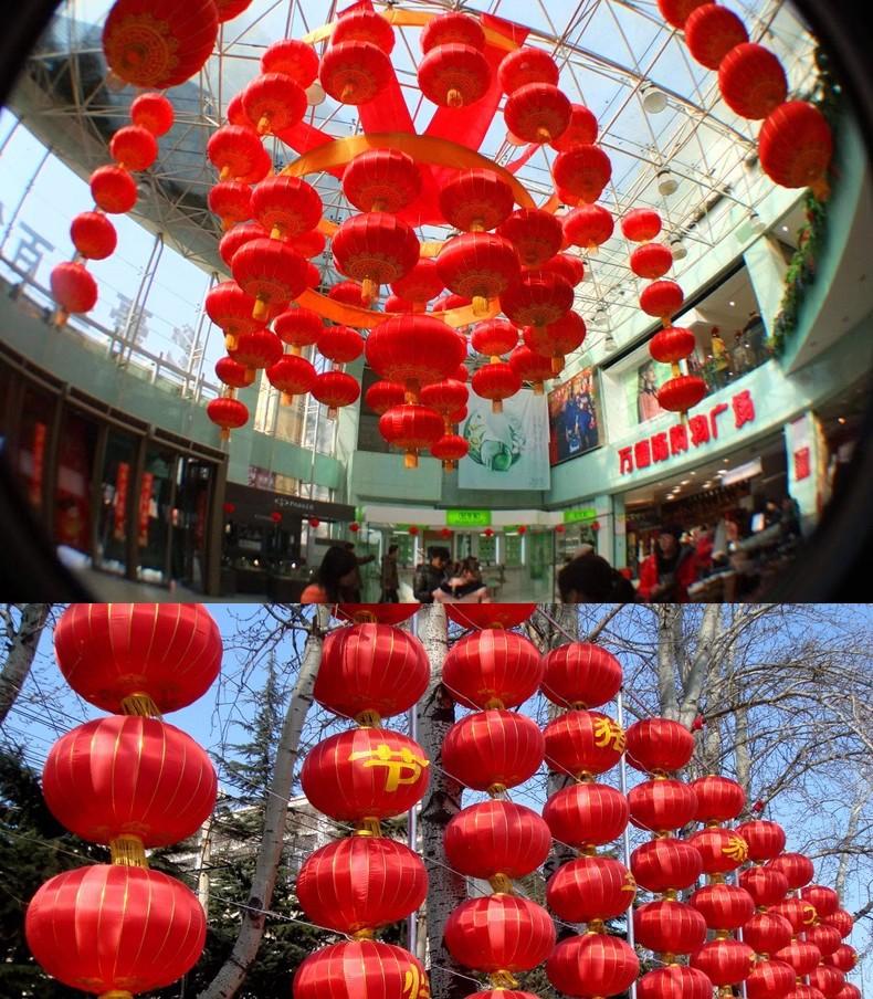 Linterna Tiekou roja de seda para exteriores de Año Nuevo, para publicidad del Festival de Primavera, con estampado de linternas, para bodas, al por mayor