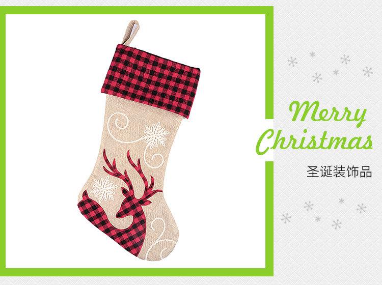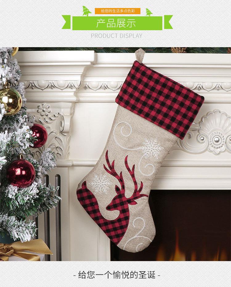 Tevey Decoraciones Navideñas Nuevas Calcetín Navideño de Ciervo de Cuadros Rojo y Negro Colgante para Árbol de Navidad Bolsa de Regalo Bolsa de Regalo