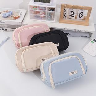 Bolsa de lona sencilla de color sólido más vendida transfronteriza, estuche para lápices de estudiante de gran capacidad, estuche de lápices de alto valor estilo ins