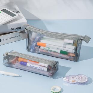 Bolsa de papelería de malla de gran capacidad de venta caliente transfronteriza, bolsa de lápices de malla transparente simple, bolsa de almacenamiento portátil para estudiantes