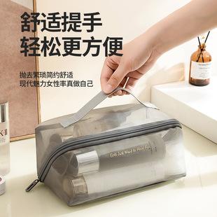 Nuevo neceser de malla, bolsa de cosméticos portátil para viaje, bolsa de aseo femenina de gran capacidad, bolsa transparente de malla para guardar cosméticos
