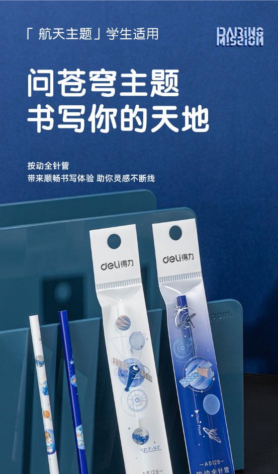 Recambio de tinta neutra Deli A5129 Ask Sky 3 de 0,5 mm para prensar, con tubo de aguja completo, para oficina y estudiantes.
