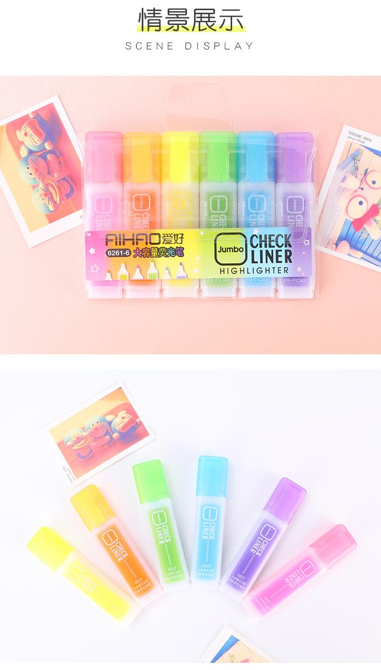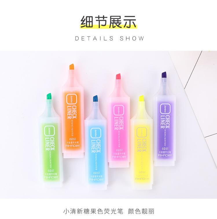 Bolígrafo resaltador de gran capacidad, color caramelo, para estudiantes, paquete de 6