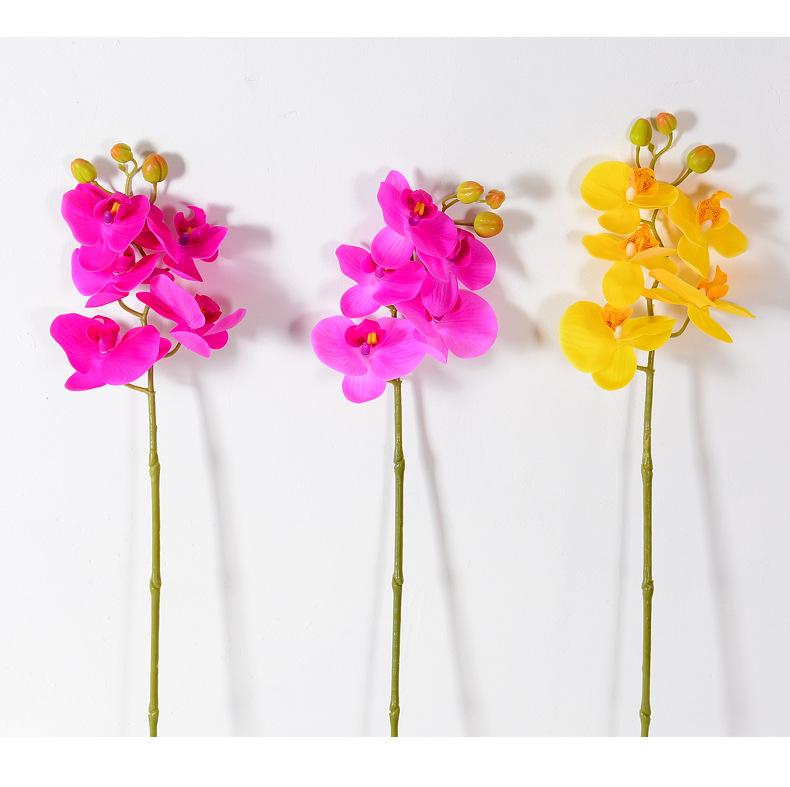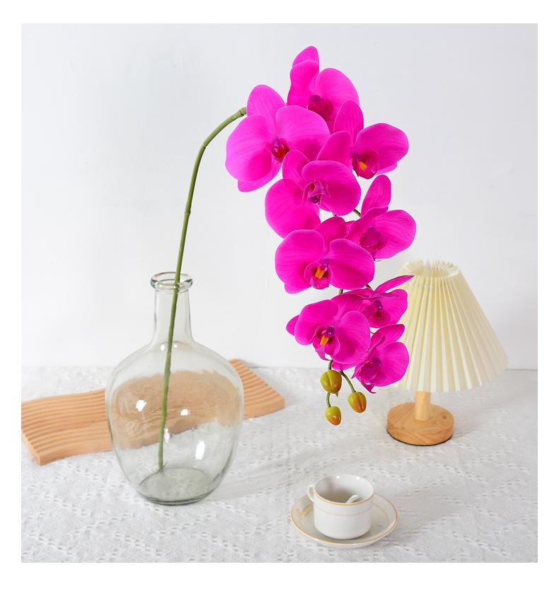 Flor de Simulación Phalaenopsis 9 Orquídea de Mano Rama Única Flor Artificial de Alta Gama Película de Mano Decoración del Hogar Planta de Simulación