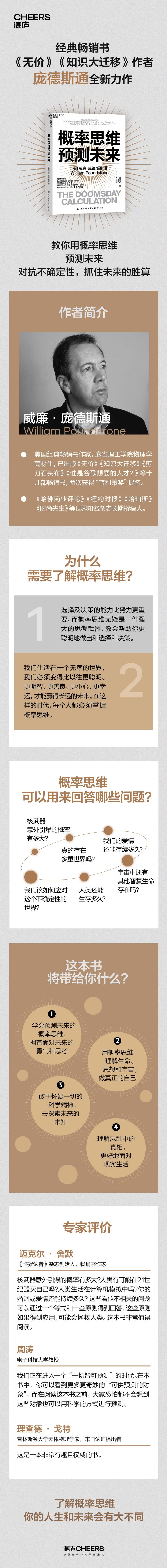 ¿Cómo podemos afrontar este mundo incierto? ¿Cuánto tiempo puede durar aún nuestro amor? La persona muestra cómo predecir el futuro con probabilidad de pensar. Los musicales del amor a Broadway pueden estrenarse. Desde el filósofo desesperado hasta la paradoja de la bella durmiente, la probabilidad de pensar es el primer elemento de pensar sobre el futuro. Es más inteligente, más sabio, más amable, cuidadoso y afortunado que nunca antes ganar un futuro a largo plazo.