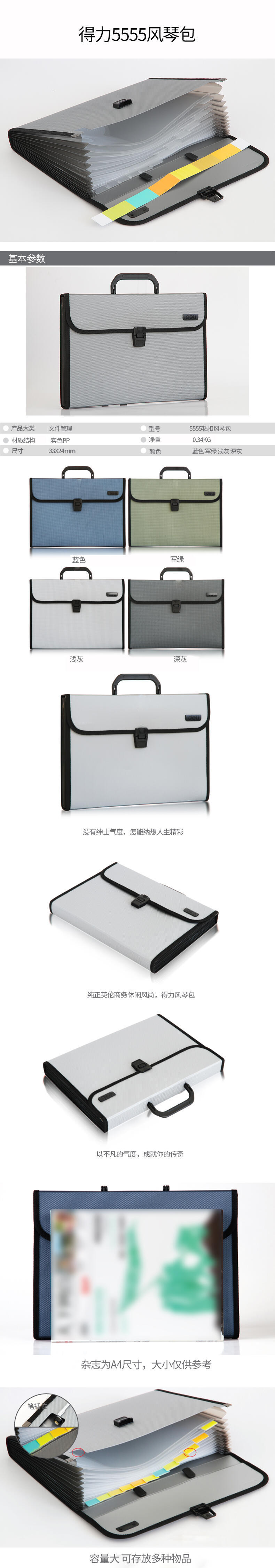 Deli PM306 bolsa de órgano color jalea simple almacenamiento de material para exámenes de estudiantes 13 compartimentos bolsa de archivo papelería al por mayor